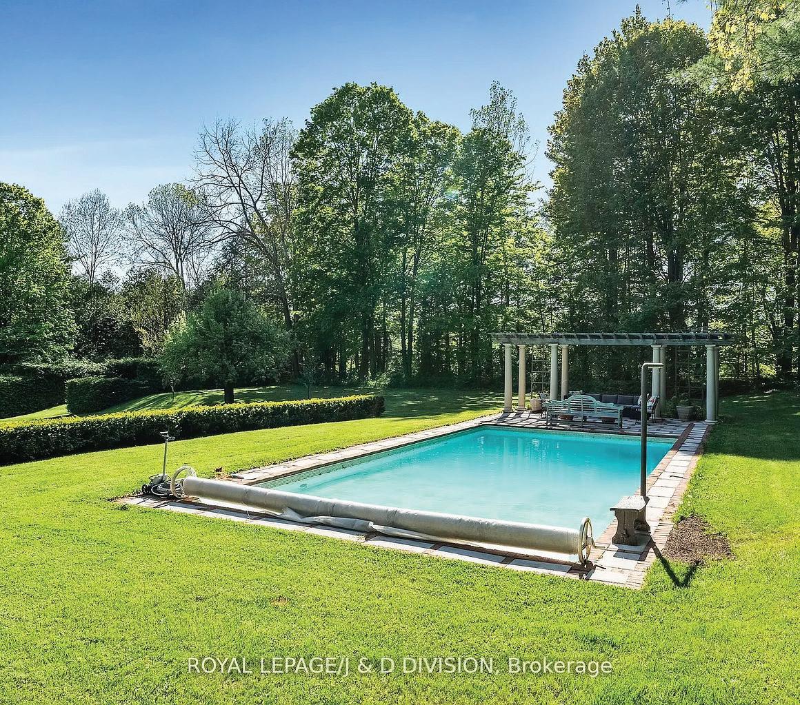 Welcome to Brookhaven. Built in 2006 with many upgrades over the past 15 years. Every square inch has been updated by the current owner including the gourmet professional kitchen with Wolf B/I Appliances, heated floors, all bedrooms/office are ensuite, 9ft ceilings throughout and a cathedral ceiling in the living room, outdoor kitchen/cabana with a dining cover area offering a TV, detached pool house/garage with 3-pc bathroom and workshop. This house boasts 6 bathrooms in total. With 3 garage bays in total, the 4th bay has been converted into a heated Rec Room with bar, kitchenette & properly ventilated hot tub area. The garage floor is pristine having been professionally tiled including the stairs to the lower level that lead to family/great room. The lower level offers designated space for the kitchenette/bar, media area with a large projector TV, Dining area and lots of space left over for your pool table and other games. The lower level plus 1 bedroom is right beside the 3pc bath. Many new windows have been installed, new roof in 2019 and approximately $275k spent on upgrades. Currently the 3rd Bedroom is used as a main floor office. Inquire about the Conservation Land Tax incentive program.