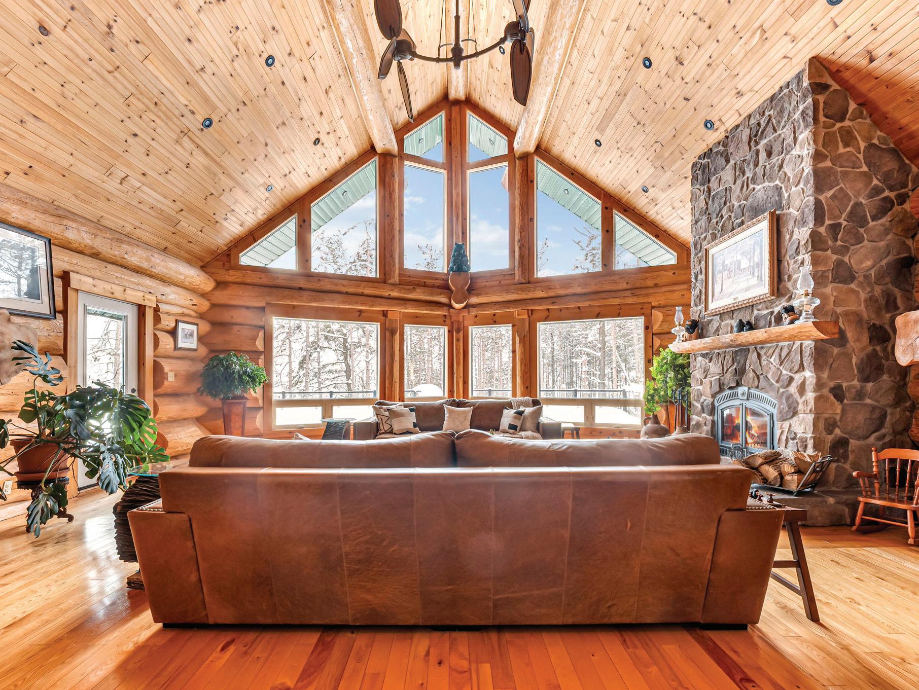 Experience the charm of Caledon in this beautifully restored log home—once a ski lodge, now a timeless 2.78-acre retreat. Featuring nearly 2,500 sq. ft. living space of rustic elegance, it offers soaring beams, a dramatic stone fireplace, and serene pond views. Enjoy a perfect blend of heritage and modern comfort, just minutes from town yet surrounded by nature’s peace. A rare, cinematic escape where every season feels magical.