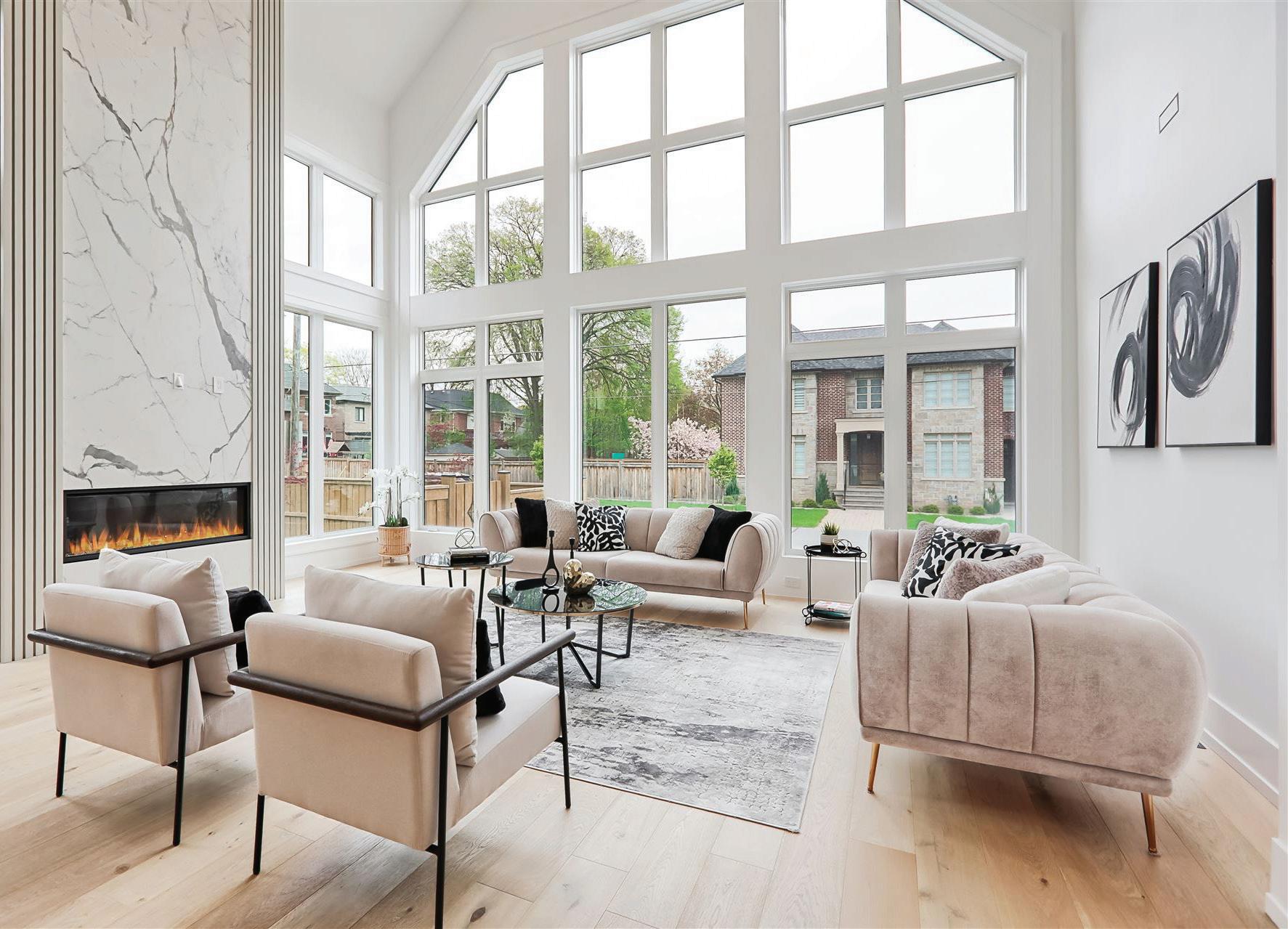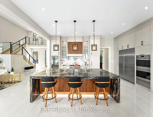 Welcome to 5 Taylor Drive, an architectural masterpiece redefining luxury living in East York. This custom-built home (2023) offers nearly 5,000 sqft of finished space with 5+1 bedrooms and 7 bathrooms. Located in one of East York’s most desirable pockets, it sits on a quiet, family-friendly street steps from parks, trails, great schools, and just 15 minutes to downtown or Yorkville. Inside, you’re welcomed by 10-foot ceilings, seamless finishes, and natural light that carries through the open layout. The main floor features a double-sided porcelain gas fireplace connecting the living and family rooms, and a chefs kitchen with top of the line JennAir appliances (42” integrated refrigerator, 36” WiFi dual-fuel range, wall and speed ovens), and custom cabinetry surrounding a gorgeous island making hosting a breeze! A private sunlit office with park views, a tucked-away powder room, and a walkout to the landscaped backyard and deck complete the main level. Upstairs, the primary suite includes a spainspired ensuite, walk-in closet, and blackout blinds. The ensuite offers a freestanding soaker tub, steam shower, double vanity, and private water closet. Each additional bedroom has its own ensuite, while the third-floor bedroom features cathedral ceilings and treetop views of the ravine.The walk-out lower level is built for comfort and entertaining with radiant heated floors, a temperature-controlled wine cellar, wet bar, lounge with fireplace and built-ins, a sixth bedroom, bathroom, and generous storage. Outside, the landscaped yard, deck, and private corner lot extend the living space beautifully.