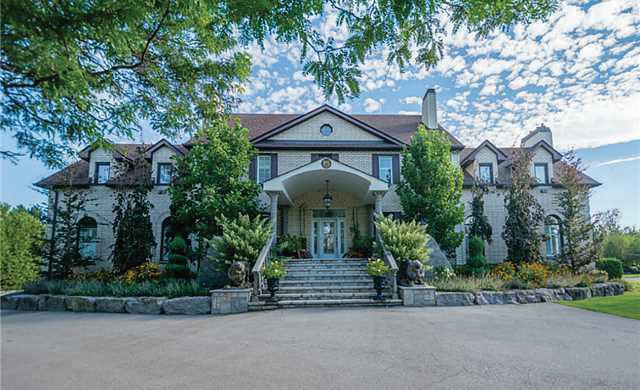 Welcome to 7300 Concession 2, Uxbridge - an extraordinary private estate nestled on 92.15 acres of pristine forest, complete with a pond, stream, meadows and kilometers of private nature trails. A gated entrance framed by handcrafted Owen Sound stone pillars and wrought-iron gates leads to a winding drive and a secluded hilltop estate. Designed by an architect and built by Bristol Homes, this residence showcases impeccable craftsmanship with Owen Sound stone, copper accents, Indiana limestone window sills, and a 50-year Enviroshake roof ($275K). Inside, the grand foyer features heated slate floors and custom lighting. The formal living room boasts a stunning stone fireplace and arched windows, while the elegant library offers custom bookcases and solid wood finishes. The chef’s kitchen is both functional and beautiful, with granite counters, heated floors, a large breakfast bar, and camera monitors offering views of the gated entrance. The principal suite is a serene retreat with Brazilian mahogany floors, walk-out to the pool, and a luxurious ensuite. Two additional bedrooms share a well-appointed 5 pc.ensuite. The lower level is ideal for entertaining, featuring a theatre zone, games room, gym, sauna, and a state-of-the-art mechanical room. Outdoors, enjoy a heated saltwater pool, stone patio, and matching cabana with sauna and 100-amp service. The beautifully renovated separate 800 sq ft guest house includes two bedrooms and Loewen windows. A 1,500 sq ft four-bay garage offers 11-ft ceilings, radiant heating, and built-in sound.