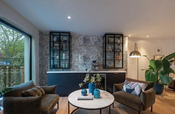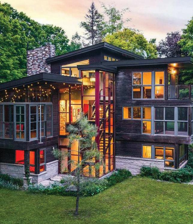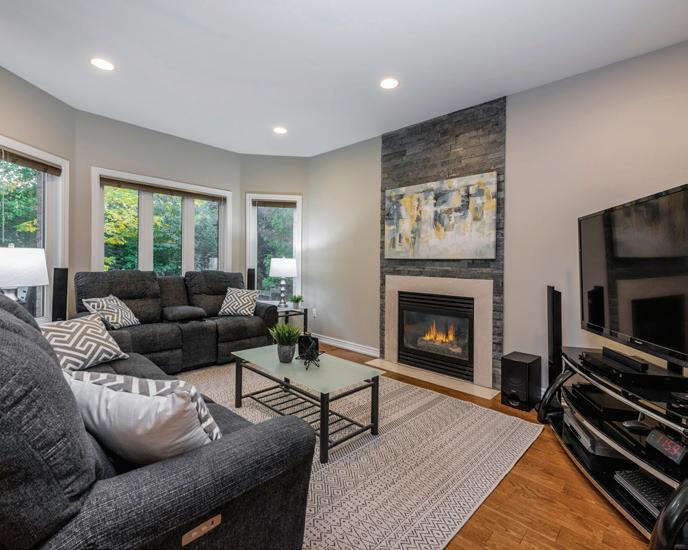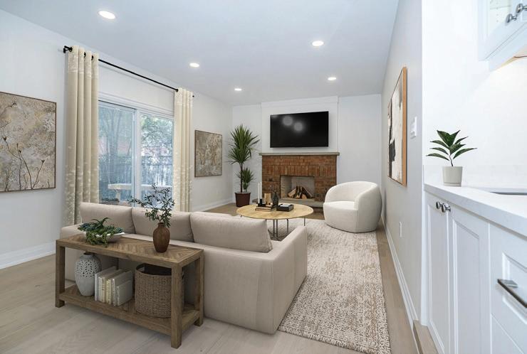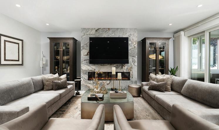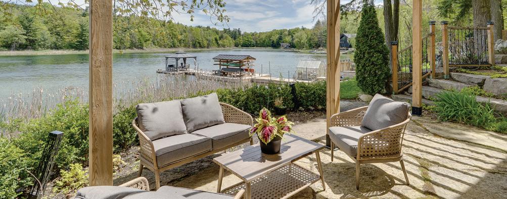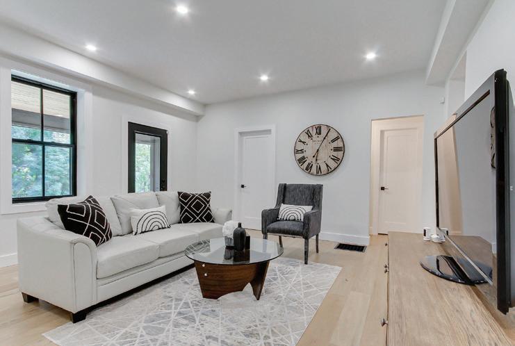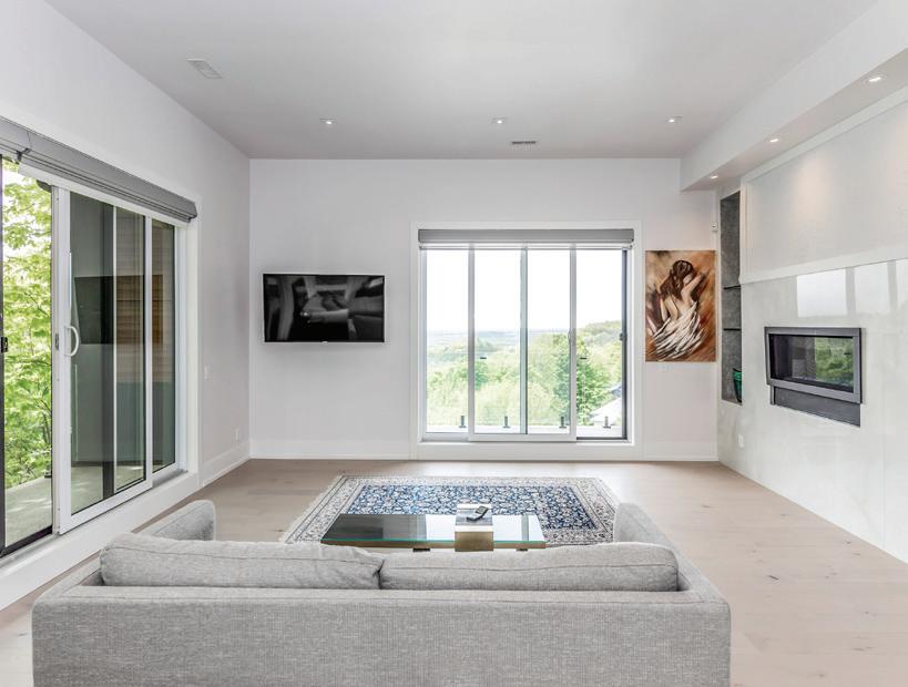 A winding driveway draws you toward The Riverlands, a spectacular top-of-the line estate offering over 7,000 sq ft of total space. Nestled on 3.67 acres with commanding views of the Grand River, this architectural gem was originally built between ‘67 and ‘70 and underwent an extraordinary fullscale renovation from ‘20 to ‘22. Today, it stands as a seamless fusion of timeless design and forward-thinking sustainability, boasting carbon-neutral, net-zero-ready systems. The main level features a stunning chef-inspired kitchen with quartz countertops, custom cabinetry, and an impressive suite of appliances. Sliding doors lead to a stone patio with a fireplace and BBQ, perfectly positioned to enjoy the sights and sounds of one of Ontario’s premier fly fishing destinations. The openconcept living and dining area is enhanced by natural light, bespoke walnut built-ins, and sweeping river views. The primary suite is a private retreat, complete with a five-piece ensuite, custom dressing room with integrated laundry, and access to a versatile den or office with wood-burning fireplace and access to the rooftop terrace. OFFERED AT $3,899,000
