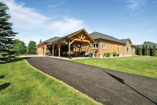 Welcome to this luxurious 6-bedroom, 5-bath bungaloft, perfectly positioned on an impressive 85 x 205 ft lot within one of Uxbridge’s most exclusive gated golf course communities. Offering over 6,000 sq. ft. of finished living space with soaring 10 ft ceilings throughout, this home blends timeless elegance with modern convenience.The main level showcases a chef-inspired kitchen with Sub-Zero and Wolf appliances, walk-in pantry, custom wall units, and a convenient main-floor laundry. Expansive principal rooms flow seamlessly, with spacious bedrooms featuring walkin closets for ultimate comfort.The fully finished basement offers versatile living and entertainment spaces, ideal for hosting family and friends. Every detail has been thoughtfully upgraded, including stamped concrete walkway, accent walls and ceilings, pot lights, and an EV charger.Step outside to your private backyard retreat, complete with a hot tub, two gazebos, and professionally landscaped grounds perfect for outdoor living and entertaining.With parking for 9 vehicles and a 3-car garage, this home truly has it all.This is a rare opportunity to own a modern, upgraded residence in one of Uxbridge’s most sought-after communities.