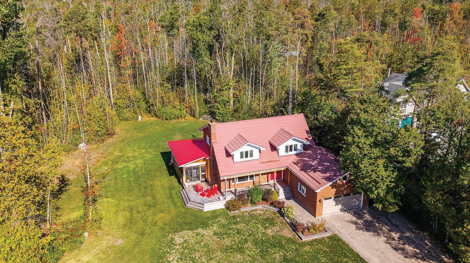 Nestled on 8.3 acres of peaceful countryside, this solid, custom-built home offers a rare blend of privacy, nature, and convenience. Impressive 40’ x 60’ outbuilding complete with a heated workshop, a two-car garage designed for storage, large vehicles, boats, or trailers, and further space upstairs. All-brick raised bungalow with a huge kitchen, living room with cathedral ceiling, and expansive windows that frame panoramic views. Fully finished lower level with in-floor heating, 2 very large bedrooms, full bath, and walkout. Solar system offers a transferable MicroFIT contract with Ontario Hydro, generating about $10,000/year.