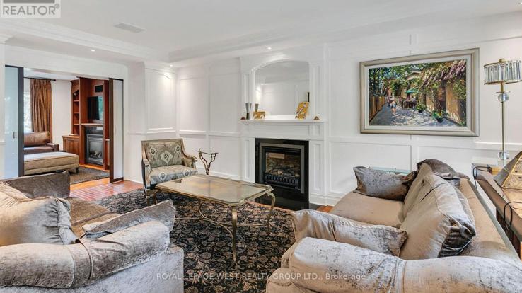 Welcome to one of Midhurst’s most prestigious addresses—Midves Court. This custom-built estate sits on nearly 2 acres of private, landscaped grounds with a circular driveway, triple garage, and over 8000 sq ft of luxurious living space. Designed with elegance and function in mind, the home features 5 bedrooms, 6 bathrooms, and high-end finishes throughout. The main floor includes a spacious great room with soaring 20+ ft vaulted ceilings and a grand wood-burning fireplace—one of five throughout the home. The chef’s kitchen boasts Thermador appliances, granite counters, and an oversized island, all open to a bright family room with full-height windows. A formal dining room, private office with gas fireplace, and stunning entryway with curved staircase and additional second staircase complete the main level. The main-floor primary suite offers comfort and accessibility, with large windows, a walk-in closet with custom millwork, 5-pc ensuite with jacuzzi, and direct walkout to the backyard and pool. Upstairs are 3 spacious bedrooms, each with ensuite bathrooms and large closets, including a second primary suite with dual closets and a fully renovated spa bath. A rare upper-level lounge provides a perfect hangout for kids or guests. Enjoy indoor-outdoor living with approx.1500 sq ft of decking, multiple seating areas, BBQ gas line, and a resort-style saltwater pool with waterfall, retaining wall, and pool house.