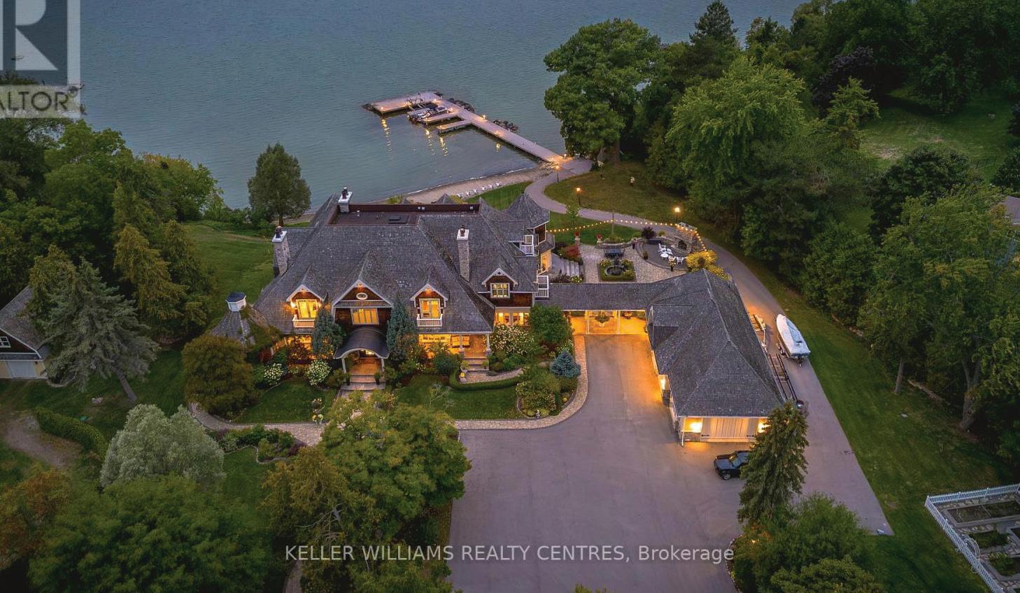 A rare opportunity to own one of Lake Simcoe’s most preeminent Lakefront Estates. Set on nearly 7 acres with 280’ of prime shoreline, this classic and elegant 10,000 sq’ residence built in 2007 combines 100 year old charm & timeless craftsmanship of the Hamptons with resort-style amenities for an unparalleled lifestyle. A grand fieldstone fence, over a century old, frames the 700’ frontage & sets the tone for the elegance within. Inside, every detail has been thoughtfully curated: Brenlo moldings & doors, bead board walls, 12” baseboards, tin & coffered ceilings, & replica antique push-button switches add period charm. The bespoke Bloomsbury kitchen, butlers pantry & baths feature marble counters, porcelain sinks & Gingers plumbing fixtures, 7 bedrooms & 8 bathrooms are appointed with marble and hexagon tile flooring. Rich dark stained Hemlock floors flow throughout, anchored by 8 fireplaces: 4 wood burning, 4 gas, creating warmth & intimacy. A 20’ high backlit stained glass domed ceiling is the highlight of the breathtaking main hall with 2 ornate staircases and B/I bookcases. Multiple staircases connect all levels, while walkouts lead to expansive verandas, terraces & balconies with incredible lake views & year round sunsets. A 60’ covered porch overlooks the lake, perfect for hosting. Outdoors, indulge in 280’ of sandy beach, a 200’ permanent dock with 3 boat slips & an insulated & drywalled 2250 SQ’ 5 bay garage & a separate 800 SQ’ garage used for landscape equipment & storage. Lush Landscaping with perennial gardens, a fenced vegetable garden, tennis court, & an extraordinary 2,700 SQ’. patio with a historic circular bronze fountain & fieldstone fireplace create a private sanctuary. The open breezeway, black slate terraces, cedar shake roof, & Copperwork eaves exemplify enduring quality. This estate is more than a home it is a legacy property designed for family, entertaining & waterfront living at its finest.