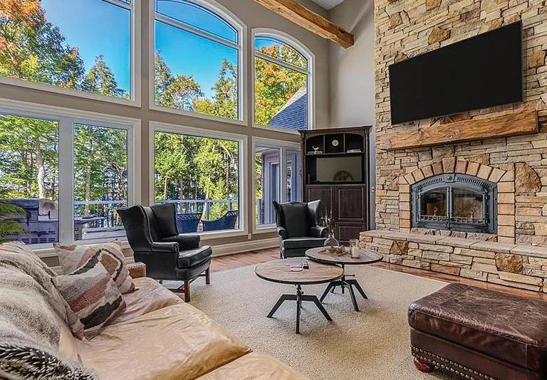 Escape to the lake without compromising on luxury. Nestled along 96 feet of pristine shoreline on Kempenfelt Bay, 292 Trillium Place is a rare and remarkable four-season retreat. With over 5,000 square feet of finished living space and a layout designed for extended family and guests, this home blends timeless charm with modern convenience in one of Innisfil's most coveted waterfront enclaves. Inside, the fully renovated interior exudes warmth and sophistication. The heart of the home features vaulted ceilings, a grand stone fireplace, and an open-concept living area that invites gatherings of all sizes. The kitchen is both beautiful and functional, with premium appliances, quartz counters, and a central island that anchors the space. The adjacent dining area easily seats a crowd - perfect for holiday dinners and summer brunches alike. Eight spacious bedrooms and six well-appointed bathrooms are spread across both levels, ensuring comfort and privacy for everyone. Whether you're hosting the entire family or enjoying a quiet getaway, there's space for connection and rest. Step outside and discover the true magic of this property. Manicured gardens and mature trees frame an expansive stone patio, a rooftop terrace above the rare dry boathouse, and a dock that extends into the sparkling waters of Lake Simcoe. Whether you're dining al fresco on the back deck, sipping morning coffee lakeside, or launching a boat for an afternoon cruise, this is a home built for memory-making. And when you want a change of pace, world-class dining, shopping, golf, and seasonal events are just down the road at Friday Harbour Resort. All of this, just 90 minutes from the GTA - your waterfront dream starts here.