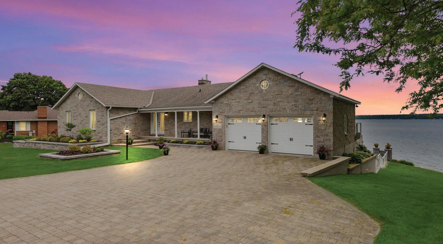 Awaken to sweeping views of Lake Ontario from this elegant waterfront bungalow, set on a rare 300-ft-deep lot with over 40ft of private lakefront. The vaulted great room features a stunning floor-to-ceiling stone fireplace, cathedral ceilings, and 12-ft sliding glass doors all connecting seamlessly to the expansive lakeside TREX decking. A chefs kitchen complete with Thermador appliances, convenient pot filler, modern counters, elegant skylight windows, and a pass-through window, that truly bring the sound of waves crashing on the shoreline, inside. The primary suite offers a spa-like ensuite with heated marble floors, walk-in closet, and direct walkout to the deck. A separate wing includes a full second kitchen, family flex room with expansive sliding glass doors to the courtyard, a bedroom, and 3-pc bathideal for multi-generational living. The detached 2 car garage features an insulated loft apartment with a kitchen, 3-pc bath, fireplace, and walk-in closet. Landscaped grounds include a hot tub, exquisite French inspired gardens, and multiple outdoor living areas, all just minutes from downtown Bowmanville, Hwy 401, and under an hour to Toronto.