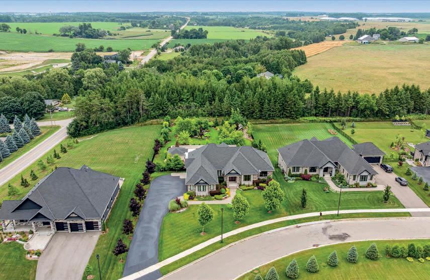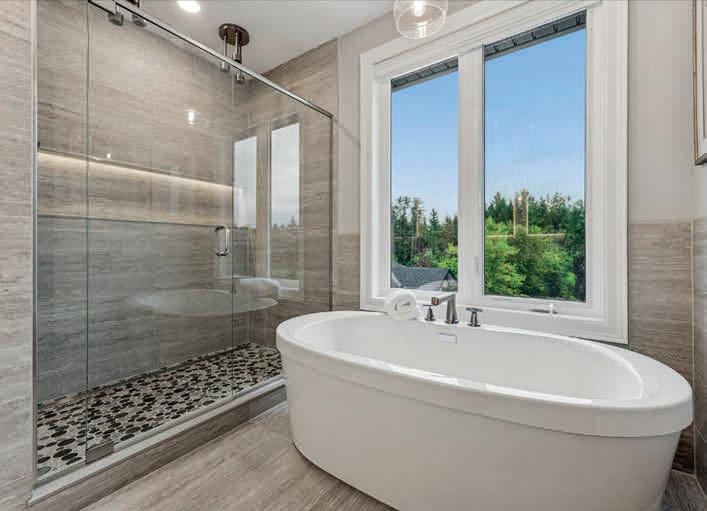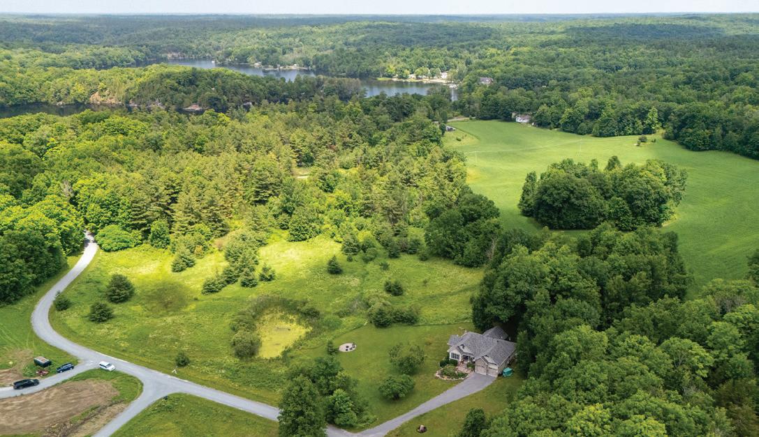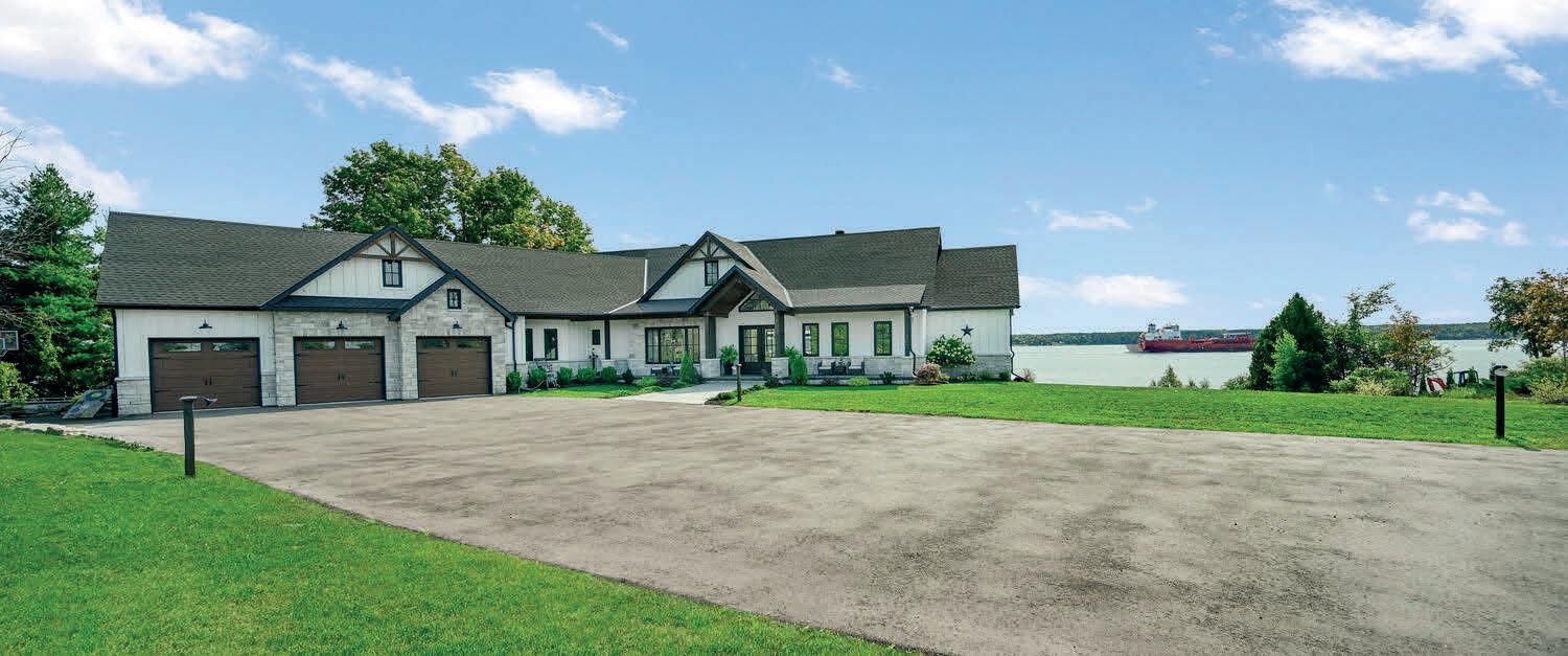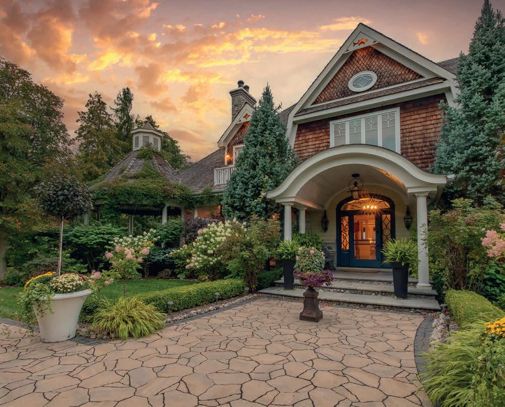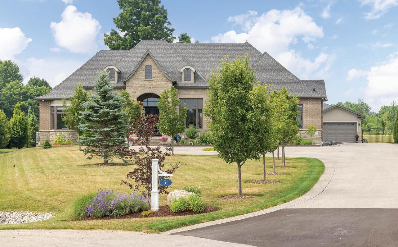 The lower level includes a wine cellar with tasting room, custom wet bar, media lounge, gym, and a separate entrance, while the garage boasts a stateof-the-art golf simulator. Outdoors, it’s Muskoka in the region, with $2 million in landscaping, a saltwater pool with waterfall, hot tub, heated pool house, outdoor bar and kitchen, and a heated patio.