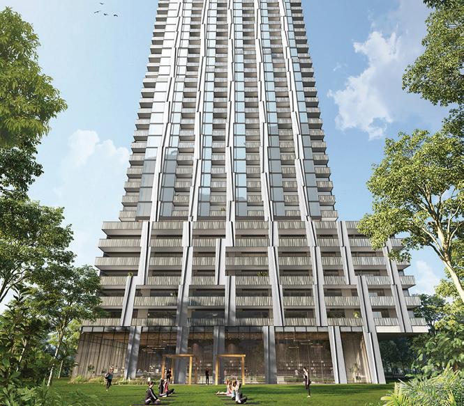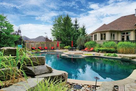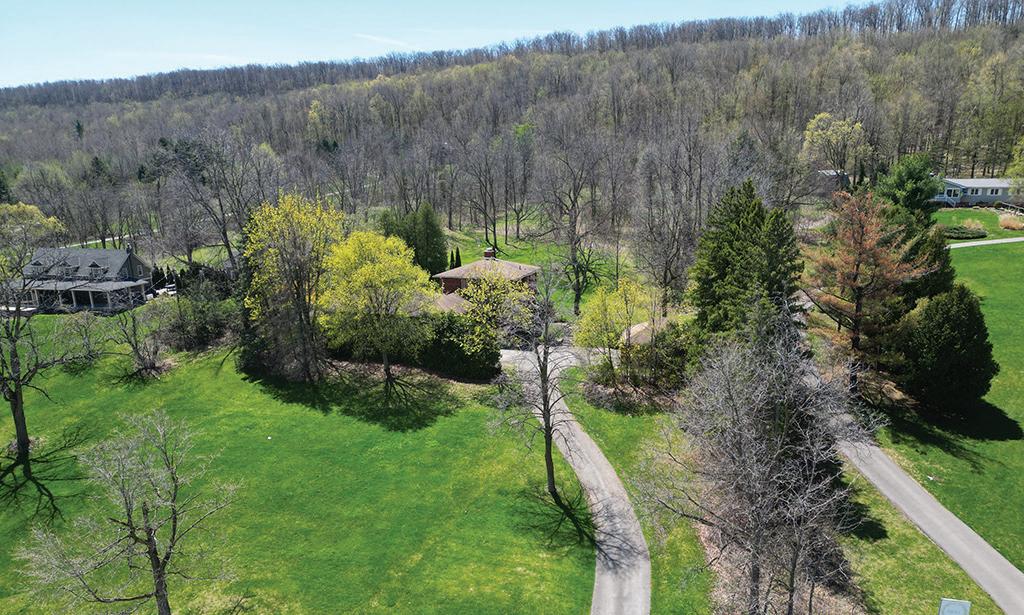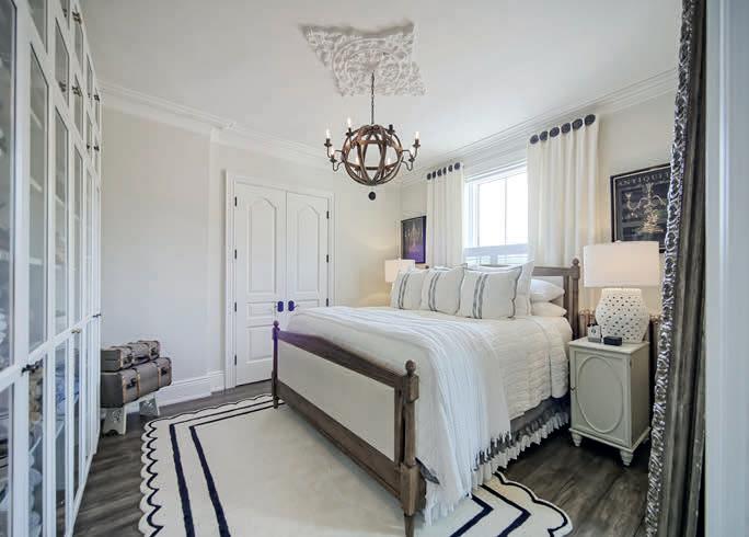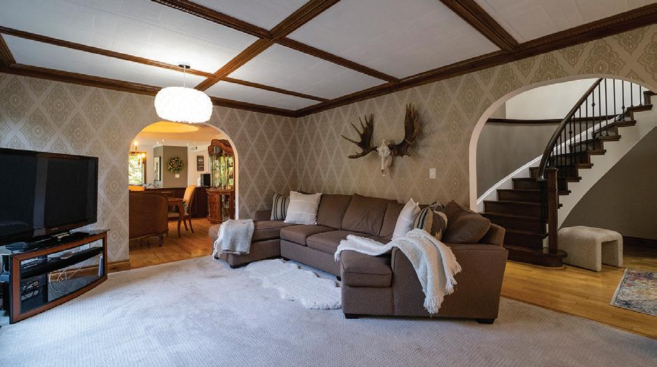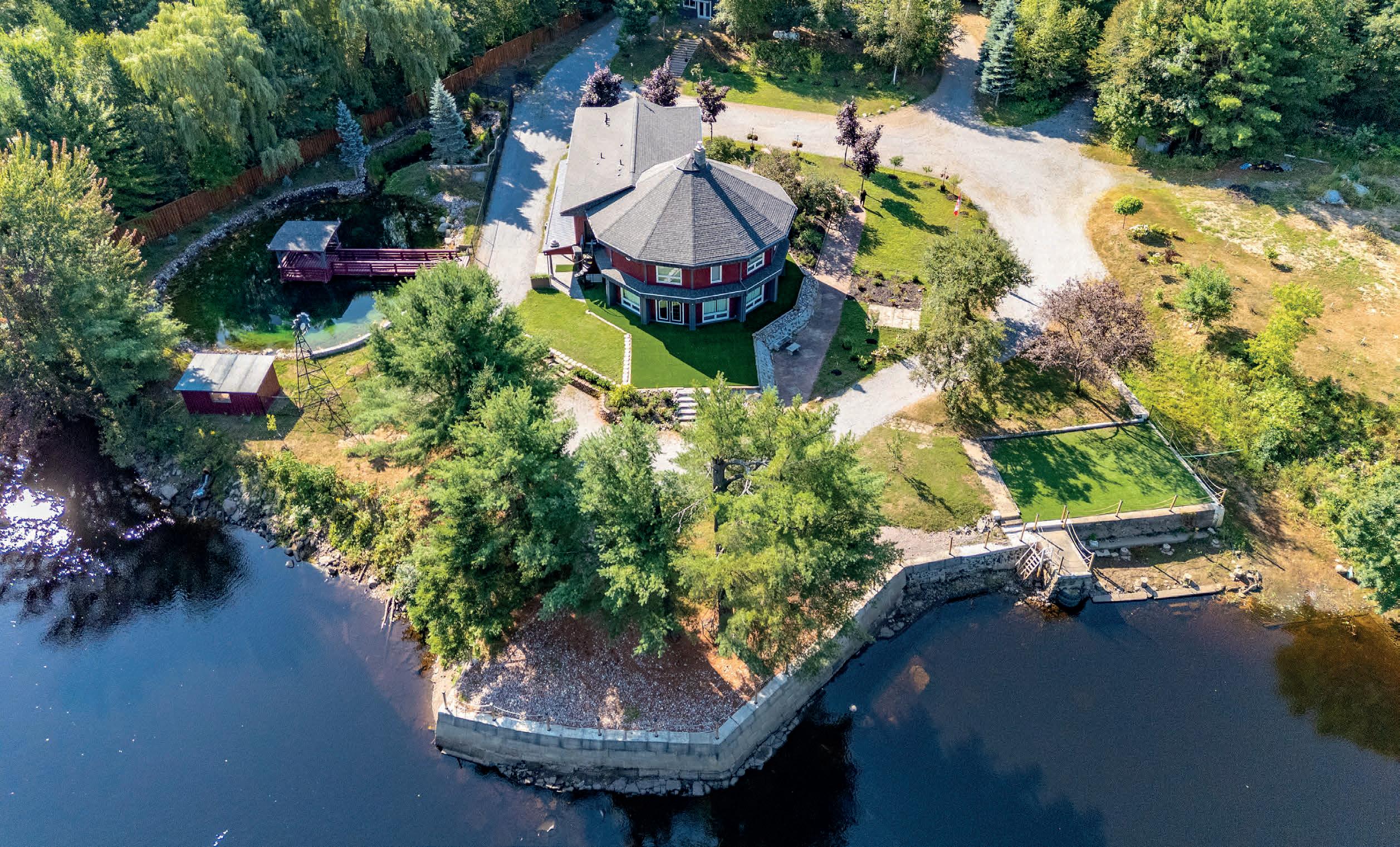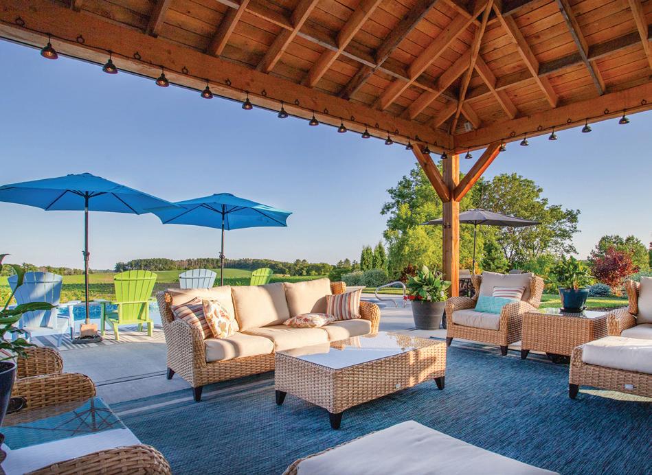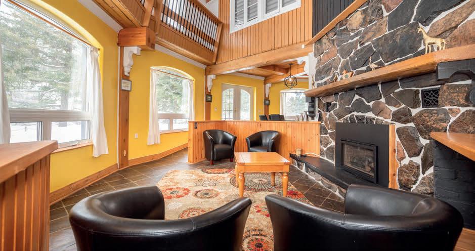 The lower level includes a wine cellar with tasting room, custom wet bar, media lounge, gym, and a separate entrance, while the garage boasts a stateof-the-art golf simulator. Outdoors, it’s Muskoka in the region, with $2 million in landscaping, a saltwater pool with waterfall, hot tub, heated pool house, outdoor bar and kitchen, and a heated patio.