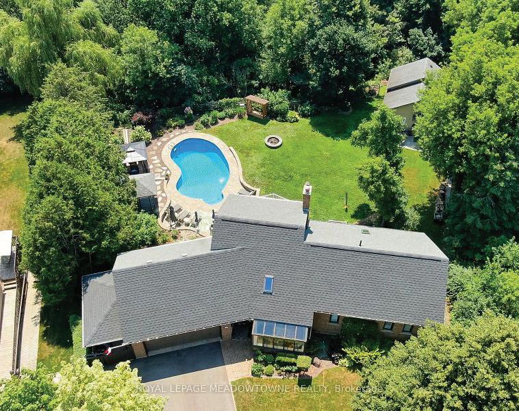 Privacy, Privacy...Welcome to River Rd. 2.51 acres in the west end of the Historic Hamlet of Belfountain. This home is a must see for all who enjoy endless daylight through massive updated windows. Towering 40 ft pine trees line the perimeter and the spring fed pond that is stocked with Rainbow Trout. The pond has clear views right to the bottom and is incredibly fresh & clean as it has been designed and engineered to flow to the Credit River. The property is extremely private and is hidden from views by the few neighbors whose properties adjoin this enclave. The house has been tastefully updated over the recent years including all washrooms, kitchen, living room, family room, Primary bedroom, pantry and the 2nd primary bedroom situated in the lower level which offers private access from the outside stairwell - perfect for the extended family. The 2nd floor primary boasts an almost 9x10 ft, his/ hers W/I closet with exceptional lighting through the 3 panel window. Close off the closet with the custom made, historic lumber barn door. The primary bedroom recently updated with pot lights, fresh paint & accent wall. Enjoy the additional outside features such as the screened gazebo, professionally maintained above ground pool, frog pond and of course the cottage away from the cottage situated over the spring fed pond. Strategically situated, you can walk from your new home to the quaint shops in Belfountain and be back in just 10 minutes to sheer privacy. You won’t be disappointed with the 3 bay garage with storage loft that is waiting to house your toys. Just a Hop, Skip & a Jump to endless trail systems, the Belfountain Conservation Park and The Forks of the Credit Provincial Park. just a cast away from the Caledon Trout Club and the Credit River. Snow Shoe to the Caledon Ski Club and you will be just a Chip and a Put away from some of Canada’s best Golf & Country Clubs.