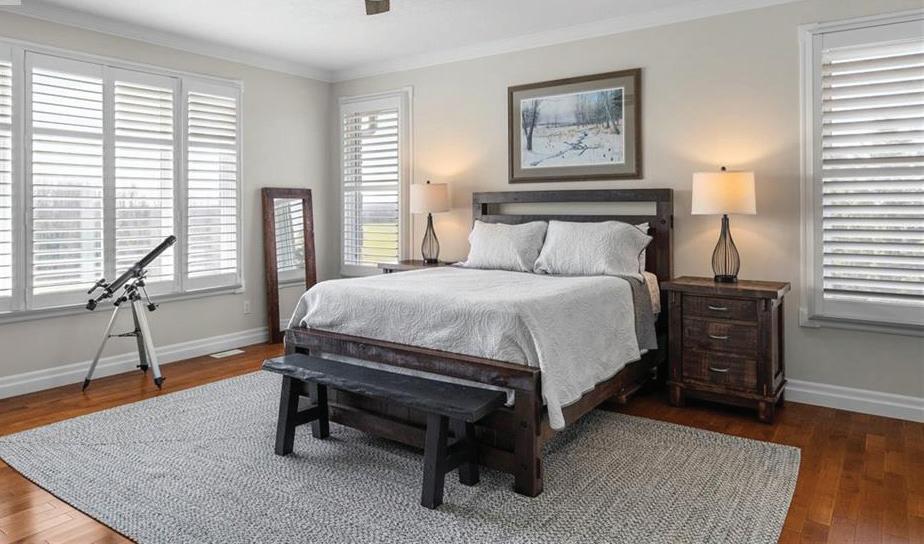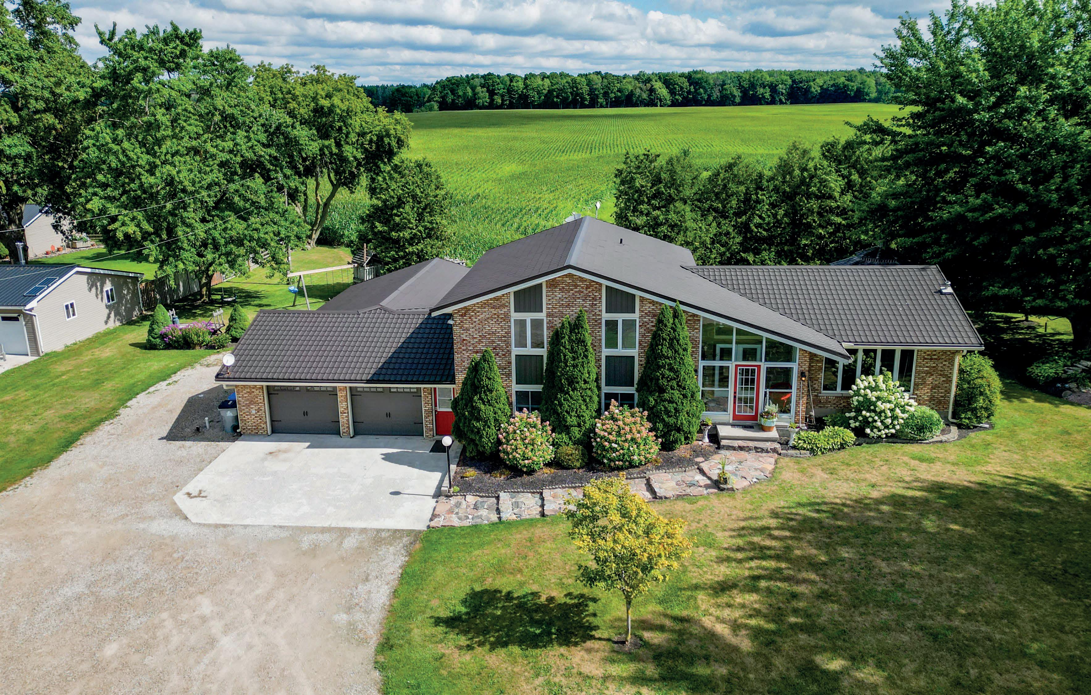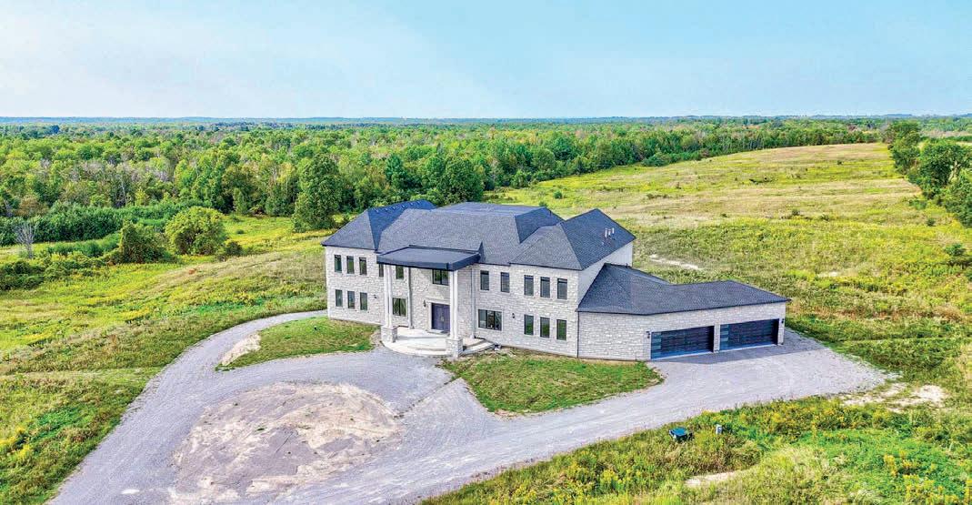 potential rental income & a Large Barn & Drive Shed that provides plenty of room for storage, equipment or hobbies. Inside, the open concept design includes expansive living areas, 11’ pot lit ceilings, large bright windows that overlook the surrounding country side & a mix of 2 x 4 ceramic tiles & hardwood floors throughout. See our Virtual Tour at https://youtu.be/yrsmiYX_lqE.