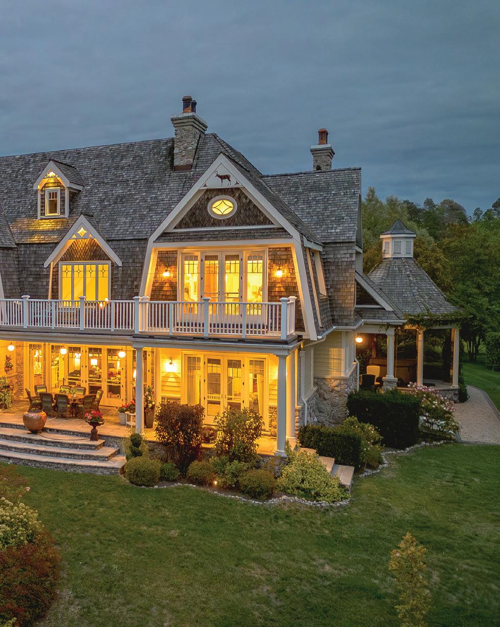 Lusciously landscaped with perennial gardens, a fenced vegetable garden, tennis court, and an extraordinary 2,700SQ’. patio with a historic circular bronze fountain and fieldstone fireplace create a private sanctuary. The open breezeway, black slate terraces,cedar shake roof, and Copperwork eaves exemplify enduring quality.