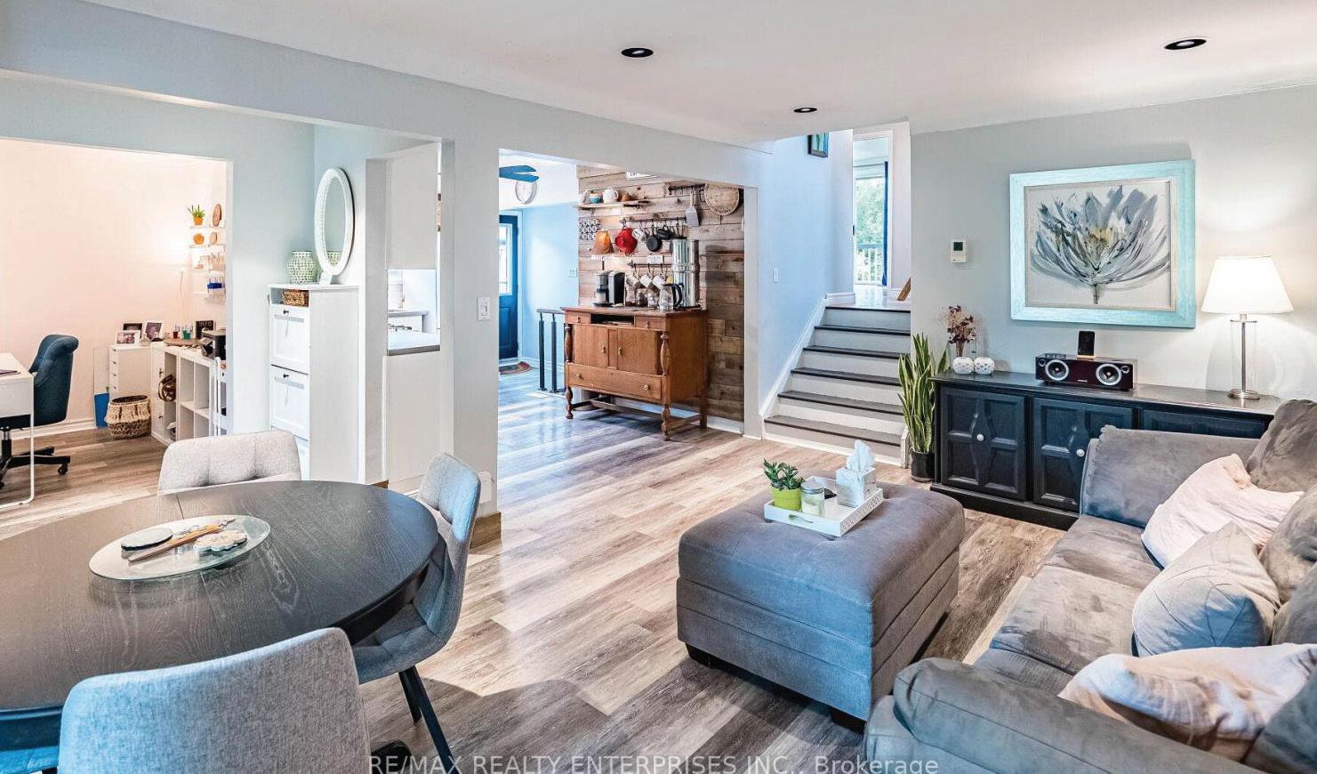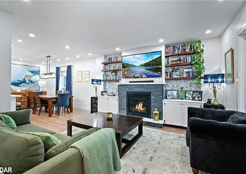 Lakeside living meets convenience in this PanAbode home on a peaceful 100x161 ft lot, steps from The Briars golf pathway and residents’ sandy beach—enjoy amazing amenities without waterfront taxes. Bursting with character and updates, it offers a bright kitchen with quartz counters, stainless appliances, breakfast bar, and lake views. The dining room seats 12+, and the sun-filled living room boasts vaulted ceilings, skylight, and gas fireplace hook-up. Features include a primary retreat with spa ensuite, junior primary, den, renovated baths, multi-tiered deck with BBQ hook-up, insulated shed, invisible fence, and easy Hwy 404 access.