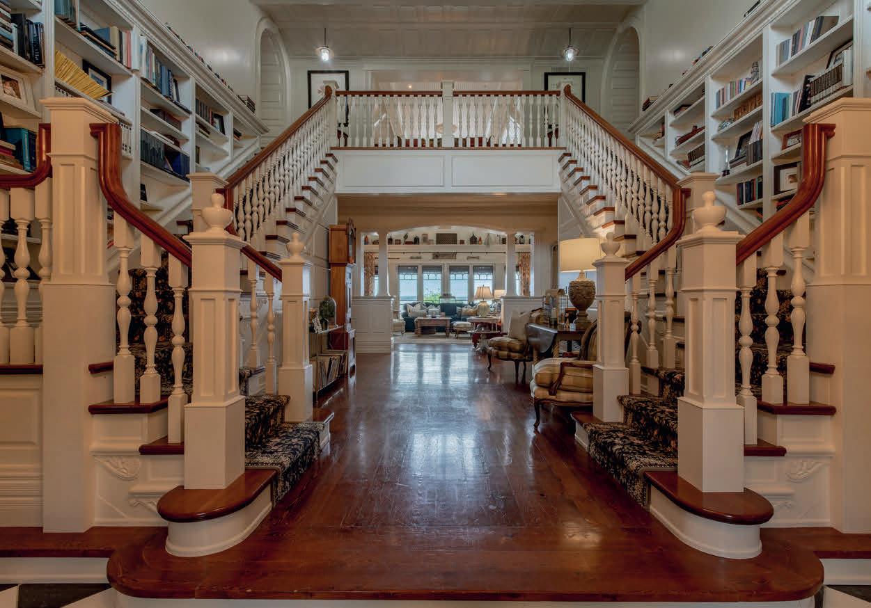 A 20’ high backlit stain glass domed ceiling is the highlight of the breathtaking main hall with 2 ornate staircases and built in bookcases.