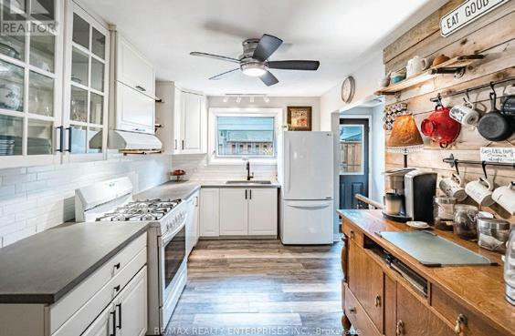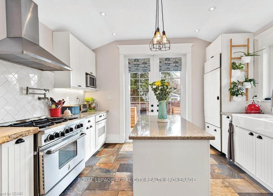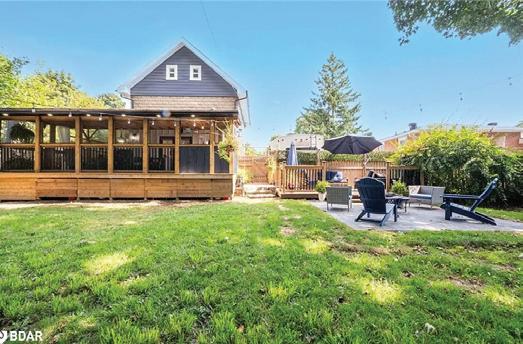 Discover this one-of-a-kind property in a prime location just steps from downtown’s vibrant core of restaurants, pubs, shopping, and theatre. Situated on a beautifully landscaped double lot with two addresses...61 John Street and 38 Margaret Street...this exceptional home features spectacular perennial gardens, multiple patios, and an elevated deck perfect for outdoor entertaining. The main residence has been thoughtfully renovated and expanded, showcasing a dream kitchen with abundant cabinetry, pull-out drawers, and a breakfast bar overlooking a spacious dining area with walk-out to the deck. The open-concept layout seamlessly connects the kitchen, dining, and living areas for an airy, modern great room feel. A walk-in pantry closet plumbed for a washer adds convenience and style with a custom barn door accent.