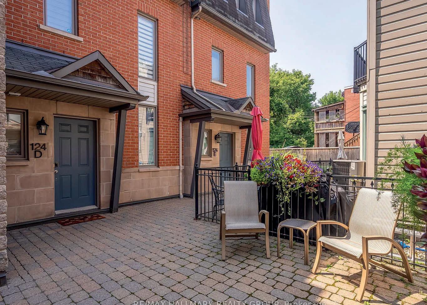 OPEN HOUSE - JULY 27th 2025, 1:00 P.M. to 3:00 P.M.Tucked away in a charming, gated enclave, 124 Gigues Ave #D offers a perfect blend of modern sophistication and historic charm in the heart of Lowertown. Steps from the ByWard Market, Parliament Hill, Elgin Street, and the Ottawa River, this beautifully updated 2-bedroom, 3-bathroom townhome delivers tranquillity and convenience. Enter through the picturesque Montmartre courtyard, reminiscent of a European retreat. The main level welcomes you with soaring double-height ceilings in the family room. At the same time, the bright kitchen featuring stone countertops and stainless steel appliances flows seamlessly into the rear yard, creating an ideal indoor-outdoor space. A cozy seating nook and family room complete this level. The second floor boasts a spacious living area with oversized windows, a built-in media wall, and rich hardwood floors, offering a warm yet refined atmosphere.