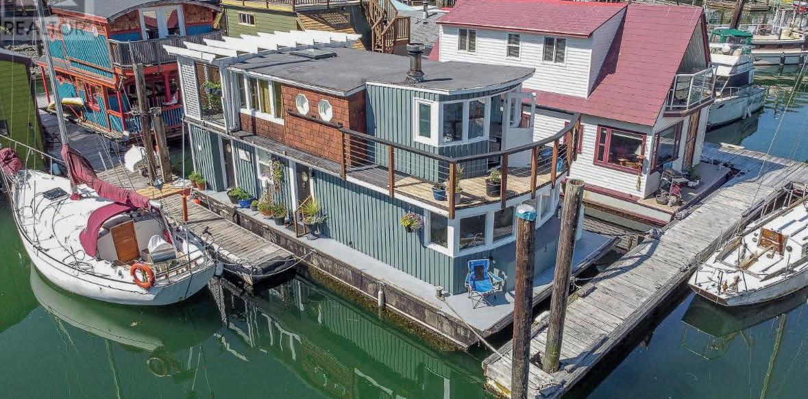 IN COWICHAN BAY. Discover the ideal weekend retreat or embrace year-round waterfront living in this quaint and cozy float home. Enjoy waking up to stunning panoramic ocean and mountain views from your bed or sip on your coffee in the open-concept main level, featuring a “Home Chef’s’’ kitchen with island and a walk-in pantry. This home has been tastefully updated, including a refreshed bathroom with a new shower, bamboo vanity and sink. Durable laminate flooring flows throughout, offering both style and practicality. Upstairs, you’ll find two cozy bedrooms and a private sunroom that opens onto a deck and your own slice of outdoor serenity. New bilge pumps, dedicated parking, 220 power. ALL furnishings, linen, tableware and appliances INCLUDED!!!—just move in and start living the float home lifestyle. You’re just steps away from local shops, restaurants, and arguably the best bakery in the valley. Don’t miss your chance to be part of this amazing seaside community! Experience the beauty of BC and West Coast living at an affordable price without settling for ordinary condo life.