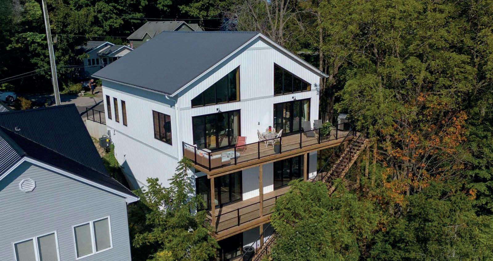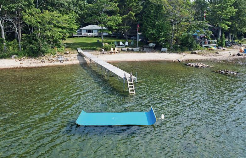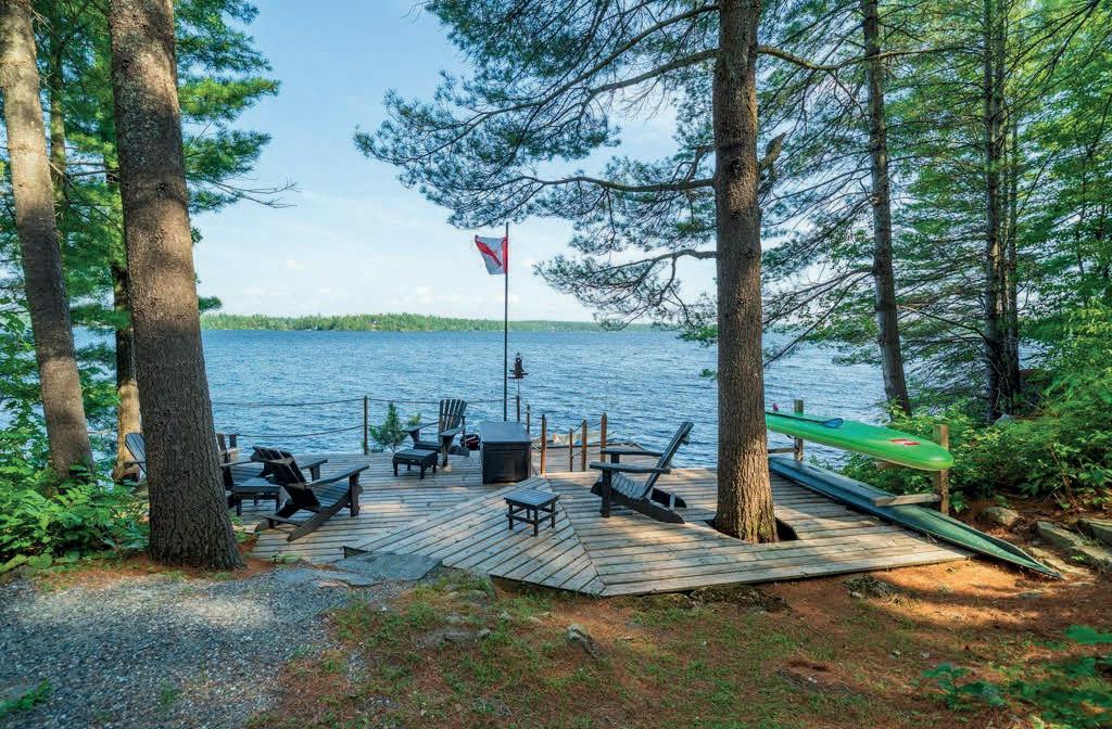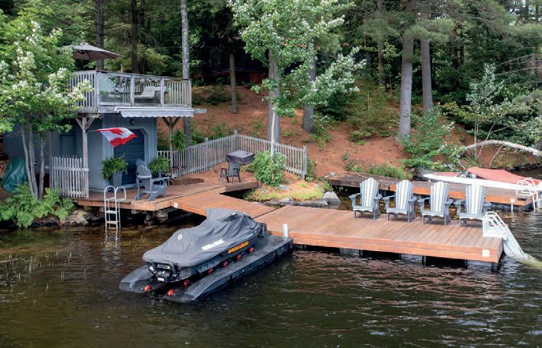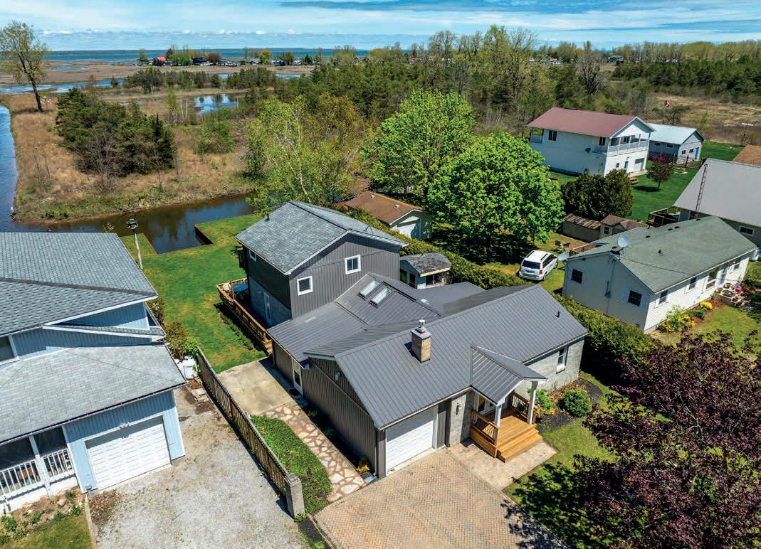 Set on a private peninsula, the property boasts over 550 feet of pristine shoreline on Gloucester Pool, part of the historic Trent-Severn Waterway. Here, deep, clean waters invite endless boating, swimming, and lakeside relaxation. A rare double-slip steel boat port, additional floating dock, and sweeping panoramic views make every sunset unforgettable.