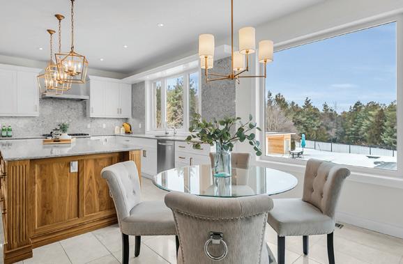 style in the formal dining room for 16, or create culinary masterpieces in the gourmet kitchen with professional-grade appliances and a walk-in pantry. A serene Muskoka Room, a main-floor primary and VIP suite, four upper-level bedroom suites with a loft and kids’ den, and a walk-out lower level featuring two additional suites, a granite fireplace, wet bar, games, and exercise rooms ensure comfort for family and guests alike.