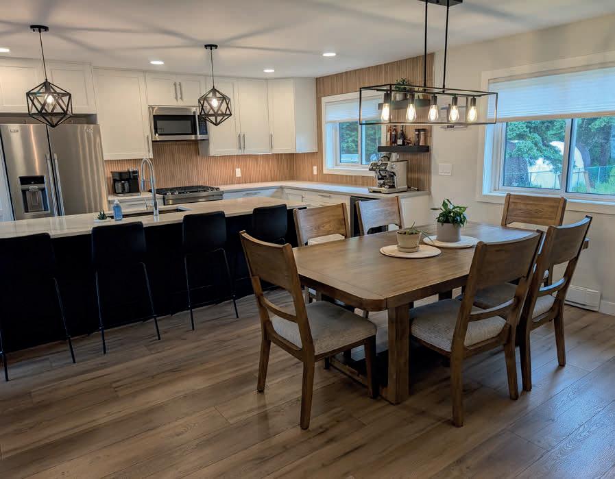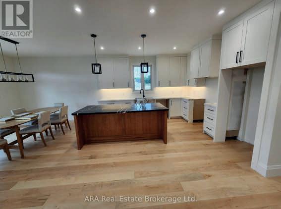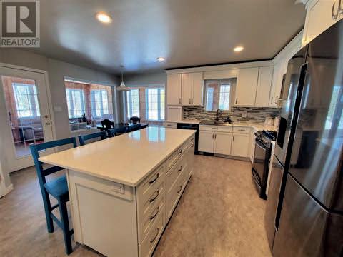 Better than new; this home has been lovingly and meticulously rebuilt from top to bottom with no expenses spared! From the moment you walk in the front door, you will be blown away by the open space and gleaming finishes. The living room features a propane fireplace with floorto-ceiling stone mantle. The custom kitchen is sure to impress the chef in your home, with its propane stove, stainless appliances, custom bar fridge, sprawling island, and marble counters! Perhaps the only room to compete with the kitchen is the Primary Bedroom suite. This room comes straight from a Better Living magazine and features a practical walk-through closet leading into the 5 piece ensuite bathroom. Heated floors, accent lighting, standalone bathtub, custom designed shower and 24" marble tile are but a few of the highlights. The basement is a fully finished oasis as well and boasts two more generous bedrooms, a full bathroom, and tons of storage. If you want to live in luxury on a beautiful lot in the heart of Northern Ontario, this is the spot for you!