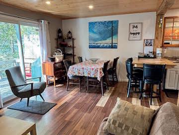 updates blend comfort and rustic charm with a refreshed kitchen, new flooring, and windows. Natural pine accents add warmth to the principal living spaces, while newer metal roof and siding ensure durability and low maintenance. A spacious lakeside deck and floating dock complete the outdoor experience, perfect for entertaining or simply enjoying the view. The 3-piece bath features a shower, sink, and an eco-friendly composting flush toilet, with the main unit tucked neatly under the cottage. Access is via a private road, with maintenance costs shared among neighbouring property owners. If you’ve been dreaming of a secluded, turn-key cottage at a reasonable price—this is it. St Andrews Lake is known for its excellent fishing, peaceful surrounding’s and untouched natural beauty. Book your private showing today and discover the serenity of lakeside living.