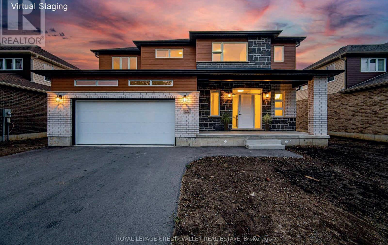 Welcome to Wickerson Heights in the desirable Byron community. Tucked away in a quiet pocket, this custom executive one-floor ranch sits on a private pie-shaped lot surrounded by mature trees. The fully fenced yard offers exceptional privacy, plenty of space to entertain, and room for a pool. The American Clay Brick exterior, lush landscaping, concrete drive and walkways, and custom enclosed porch offer strong curb appeal. Step inside through grand double doors to discover 3+1 bedrooms, 3 full baths, and over 3,000 sq ft of finished living space. Quality finishes include Anderson windows, 30-year shingles, crown moulding, 6 baseboards, and maple hardwood floors. The chef’s kitchen features granite countertops, a walk-in pantry, and a breakfast nook, while the formal dining room is ideal for gatherings. The spacious great room centres around a beautiful fireplace with custom mantle. The finished lower level offers a large family room, extra bedroom and bath, hobby space, and ample storage. Energy-efficient upgrades include 2x6 construction, spruce roof boards, and enhanced attic and wall insulation. The oversized garage has a gas BBQ hookup, cold cellar, and direct basement access. Outside, enjoy a covered rear porch and large garden shed on a cement pad. This meticulously maintained home offers luxury, comfort, and convenience in a peaceful, established neighborhood an exceptional opportunity you wont want to miss!. Offered at $1,275,000