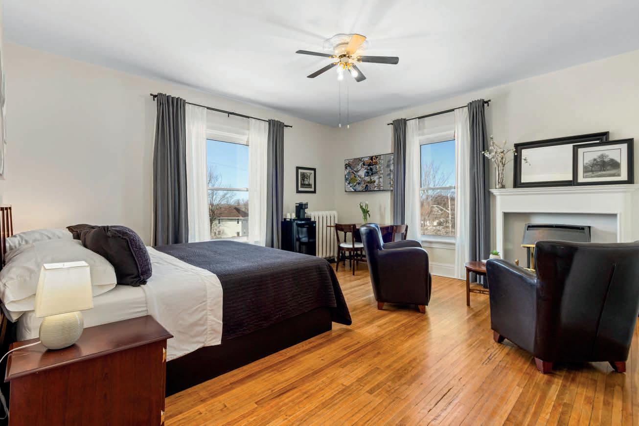 A rare offering of historic grandeur and refined comfort, this stately 5-bedroom, 4-bathroom estate sits gracefully on an expansive, meticulously landscaped lot. Masterfully preserved and thoughtfully updated, the home showcases exquisite original millwork, soaring ceilings, and expansive living spaces across three finished floors and a full basement. Arrive via a tree-lined approach to be greeted by lush gardens and an elegant wrap-around porch perfect for quiet morning coffee or evening gatherings. Inside, a grand foyer opens to generously scaled principal rooms, including a formal dining room, timeless library, and an inviting living room with a wood-burning fireplace. The spacious kitchen blends heritage character with everyday functionality, ideal for both family living and elegant entertaining. Upstairs, five well-appointed bedrooms and three full baths offer both privacy and flexibility, while the third-floor family room provides a tranquil retreat with elevated views. Every space has been curated for comfort, sophistication, and ease of living. Two furnaces (basement and upper floor) and air conditioning are 4 years old, kitchen backsplash and quartz countertop, high end stainless steel appliances, hot tub and fencing on west side of property 3 years, outdoor patio 1 year old. The home has been completely repainted (inside and out) over the past four years. Set in a private, prestigious enclave just minutes from city amenities, this exceptional residence offers the rare blend of historic charm and modern luxury. A truly distinguished property for the discerning buyer.