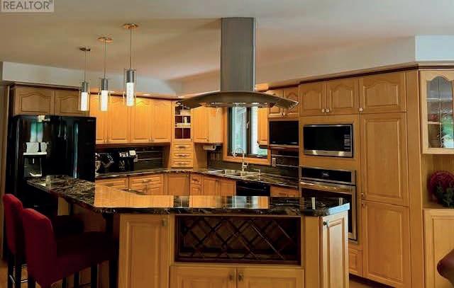is the heart of this gathering area with a large island, stone surfaces, ceiling-height cabinetry & integrated appliances, flows into an impressive Butler’s pantry with 2nd dishwasher & fridge. The dining area, enhanced by wall-to-wall bench seating & a wet bar, allows you to expand your dining space for larger groups. A stunning main-floor study with walnut built-ins offers a moody, sophisticated retreat. The dramatic primary suite is a private sanctuary, featuring a luxe 5-piece ensuite with heated floors, a curb-less glass shower, a soaker tub, a separate water closet, & a gorgeous dressing room with custom built-ins, + garden door access to the hot tub. A second main-floor bedroom & a beautifully finished laundry room complete this level. The lower level offers a fusion of destinations, including a wine lounge with a fireplace & full bar, a media/games room, two large bedrooms, a 4-piece bath, a study/gym, & ample storage. Step outside to an entertainer’s dream: a spacious stone lanai with overhead heat units, fireplaces, a built-in BBQ system, a heated saltwater sport pool with a triple water feature, stone patios, a hot tub, & a pool house all set against the serenity of the protected forest. An oversized 2.5-car garage plus a wide driveway accommodates parking for five vehicles.