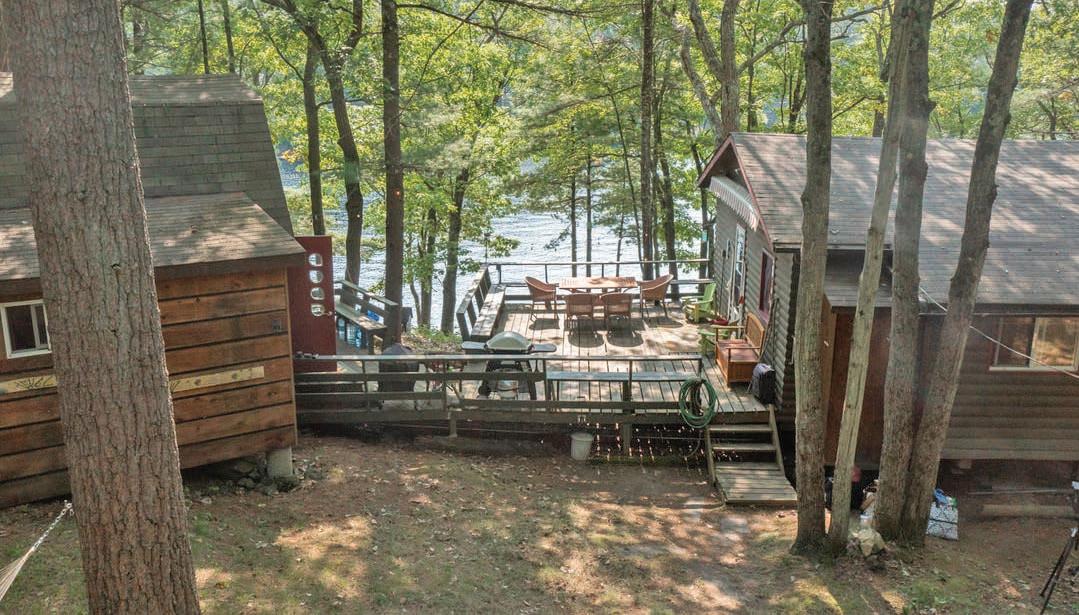 5+ Acres of Privacy, 2,300+ sq ft Lakehouse, 5 years new + Vintage log cabin + bunkie, Wet boathouse, Summer Sunsets! $2,799,000