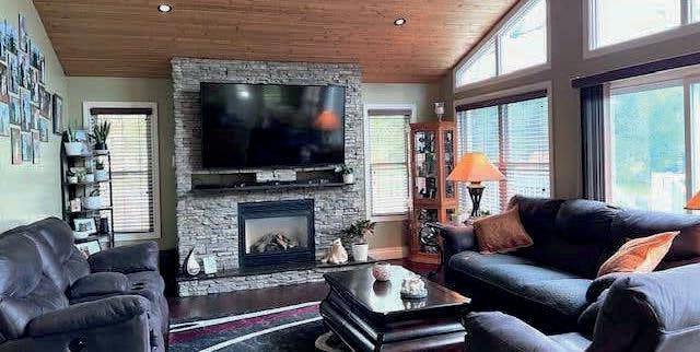 Surroundedbymaturetrees and natural beauty, this propertyoffersthe rarecombination ofpeaceful country livingwiththe convenience ofcityservices. Tuckedawayon4.6 acres,thispropertyfeaturesa 2 bedroom (+den), 2 bathroomhomespanning2,500sqft, an impressive 40x60 garage (plus 20ft carport), greenhouse, gardens and plenty of mature trees/trails for you to enjoy! A warm interior greets you as you enter the residence - mainfloor featuresa spaciousrec room withgas fireplace,large primary bedroom withwalk-in closet, 3 piece bathroom, laundry area and plenty of built-instorage.Secondfloor featuresbeautiful vaulted ceilings in the living/dining/kitchen which offers direct accesstothe secondstoreypatio which overlooks the property. Secondbedroom and den withbuilt-inclosets, and calming 3piece bathroom with soaker tub complete the secondfloor.Homehas gas forcedair heatwithgas fireplace backup, central acand iswired for generator, ifdesired.Justa littlefurther backonthe lot,you will findthe realshowstopper - a 40x60 garagewith4 bay doors and 20ftcarport addingmorecovered space for all yourtoysorstorage needs.Insulated and heated year-round, thisone ofa kindgaragefeatures its own 3piece shower, officeand loft. Surroundedbya mix of maturetrees,gardens and evenyourown greenhouse, thispark-like propertyisanabsolutepleasuretoview. Whether looking for the perfect spottoenjoy your favourite hobbies, enjoy the trails or simply soak in the scenery,thiscould bethe one for you.