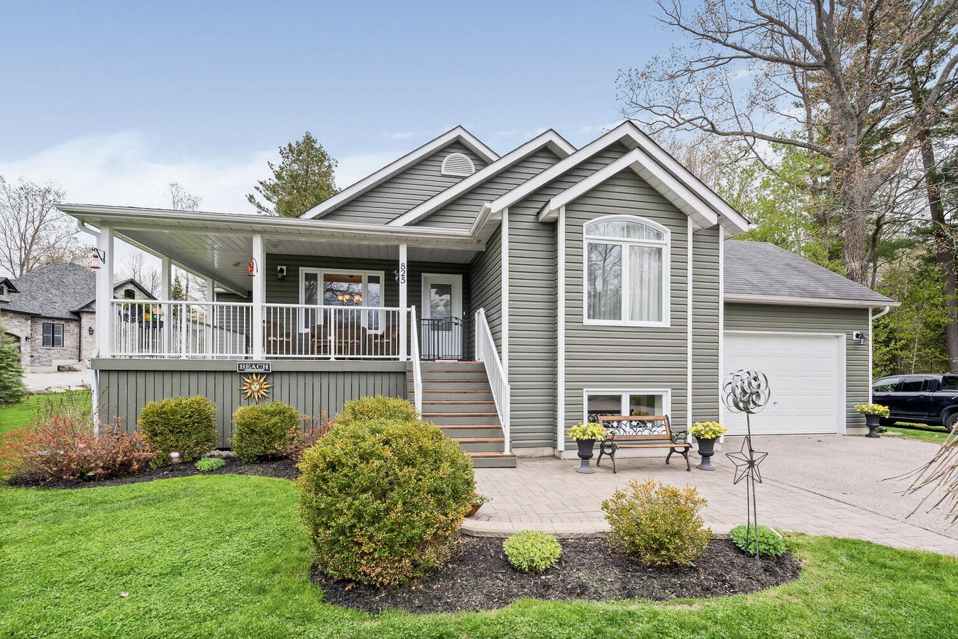 This custom-built 3-bedroom, 3-bathroom bungalow sits on a premium corner lot in the charming town of tiny, just a short walk to white sand beaches! Featuring 9 ft ceilings, pot lights, vinyl plank floors, a chef’s kitchen with quartz counters, and a grand family room with fireplace and walkout to a large deck. The basement offers 9 ft ceilings and rough-ins for future potential. Enjoy your private backyard oasis with an oversized deck and barrel sauna. A rare blend of comfort, style, and location!