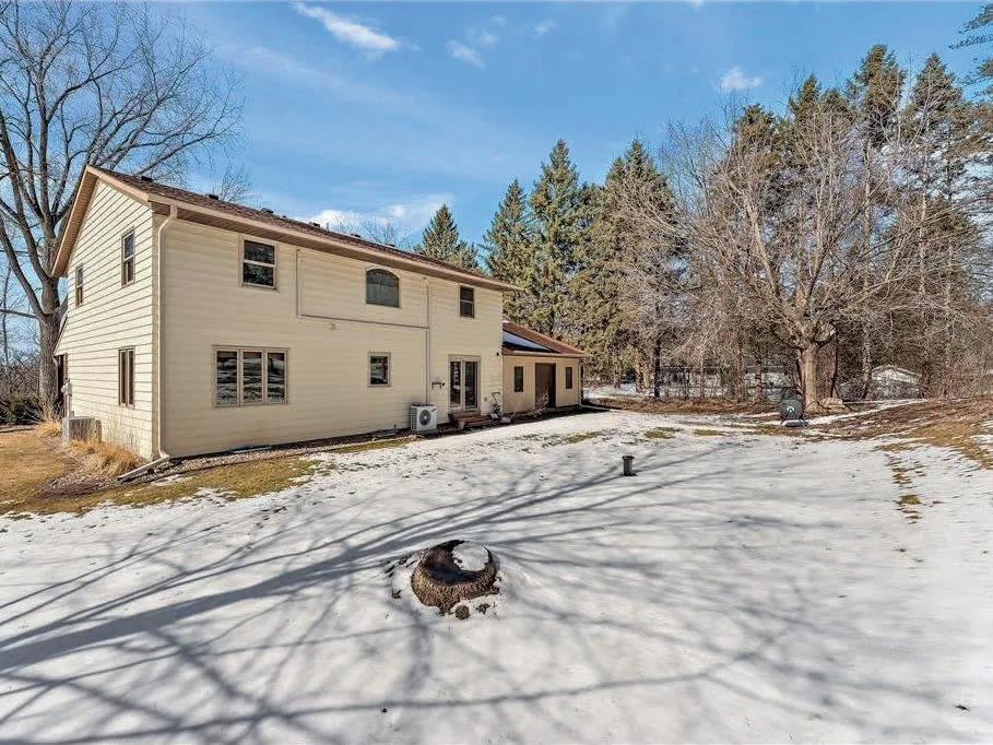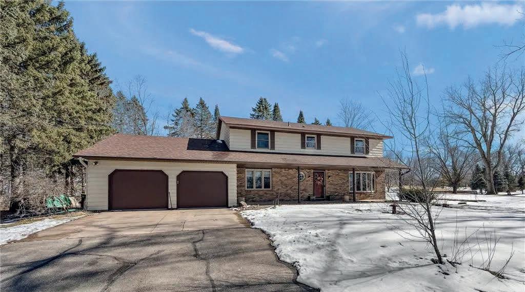 Looking for a secluded property with easy access to everything? This is it. Large two story on dead end road, surrounded by woods, and private lot. Room for outbuildings. Amazing front porch and back patio with fire ring will help you enjoy these views. Four bedrooms on one level, primary suite with gorgeous, updated master bath you have to see; heated floors, walk in ceramic custom shower, large soaker tub, dual bowl vanity with custom wall. His and hers closets in primary. Large finished lower level with extra den and workshop. Newer roof, carpet and mechanicals. Radon mitigation installed, infrared air cleaner, amazing water treatment system, private well and septic, three car garage with extra door on back for ease of reaching backyard. This home is move in ready and available for a quick close. 8290 Angus Avenue, Inver Grove