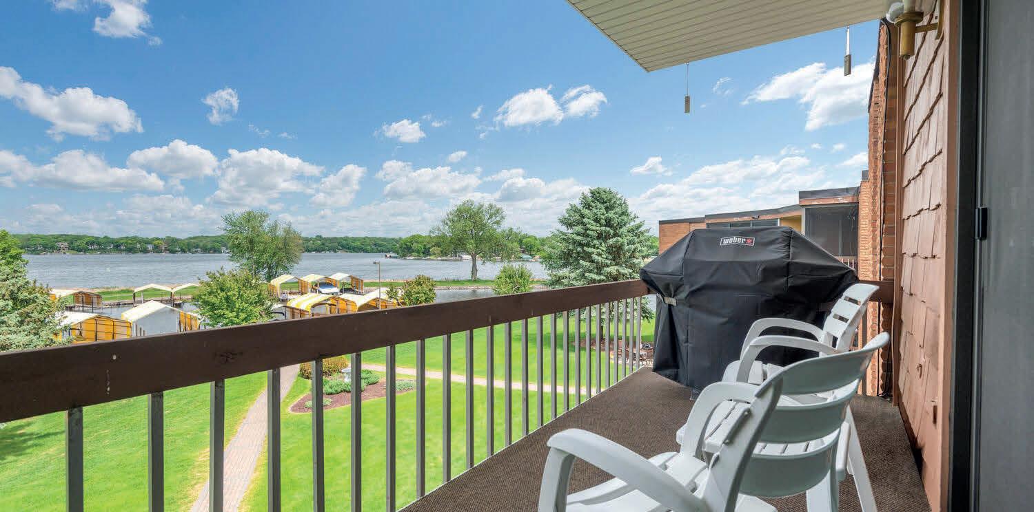This is the premium top-floor unit in the development with a million dollar view of Jennings Bay on Lake Minnetonka! Unit 131 is a 3 bedroom, 3 bath floor plan. 2 bedrooms were combined to create a large primary suite with sitting area overlooking Jennings Bay! One bath of this home was converted into a new private laundry room just off the primary bath! Entertain guests in the living room and on the deck with outstanding lake views. Your 27x13 covered slip is a short distance out the rear entrance and can hold a 31 foot boat. The all white kitchen was updated with stainless appliances. The dining area mirrored walls capture the excellent lake view from the new 8 foot triple pane sliding door. 3 new Marvin windows were also just installed. The large primary bedroom offers a beautifully remodeled three quarter bath and laundry room. There is a full guest bath off the hallway. The third bedroom doorway was opened up to create a handy flex room with great lake view off the living area. Enjoy 8 acres of lakeside property at Seahorse! Use of private boat launch, guest docks, indoor pool with sauna and exercise, updated party room, putting green and fountain. The condo includes a deep one stall garage with new garage door and opener. Take sidewalks to Mound shopping, dining and trail system! Boat slip # 21, garage # 23.