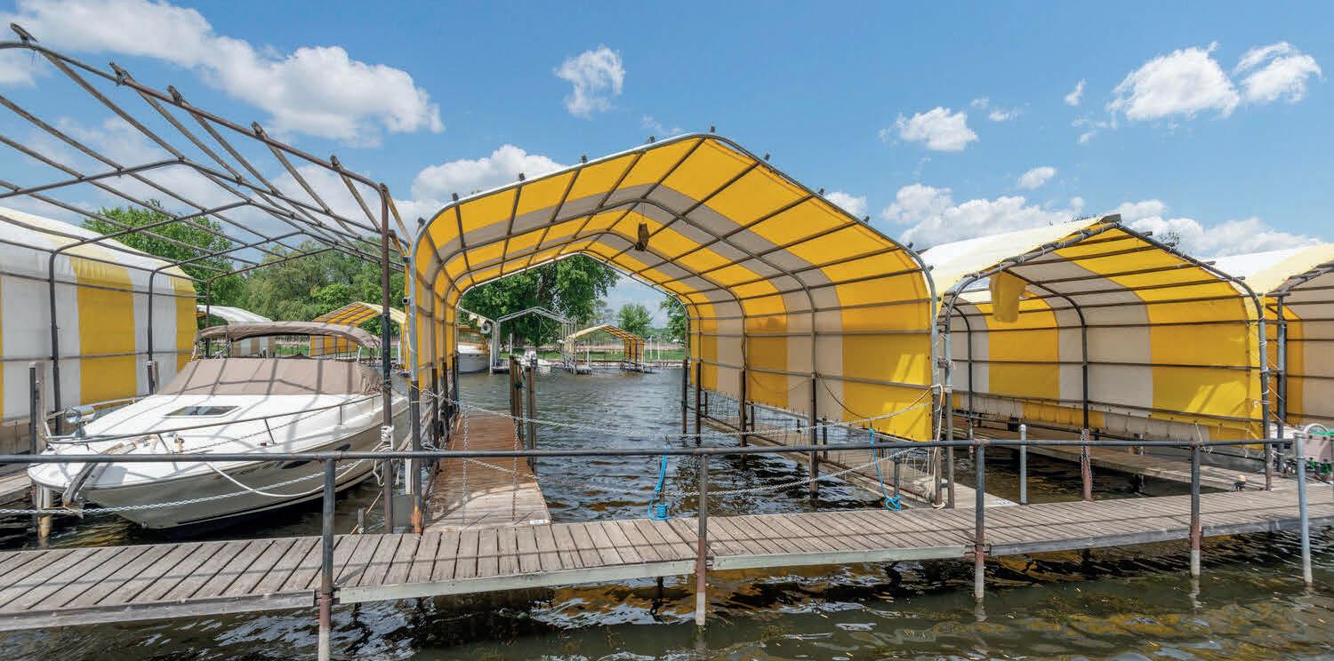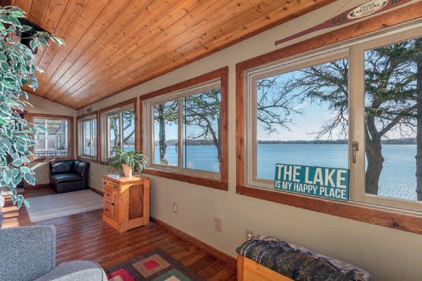 Outside, the rhythm of lake life takes over. A flat lawn leads to the water’s edge, with space to gather, relax, or simply take in the view. As the day winds down, the western exposure brings long, quiet sunsets that become part of the routine.