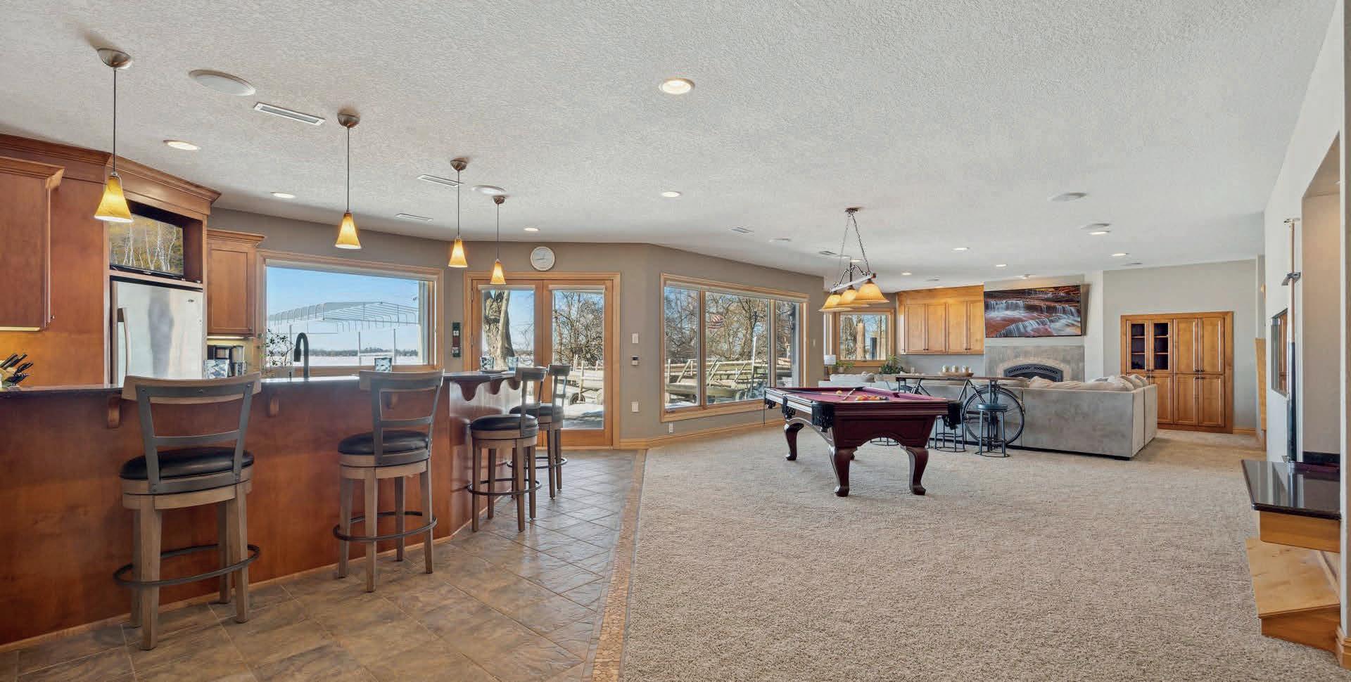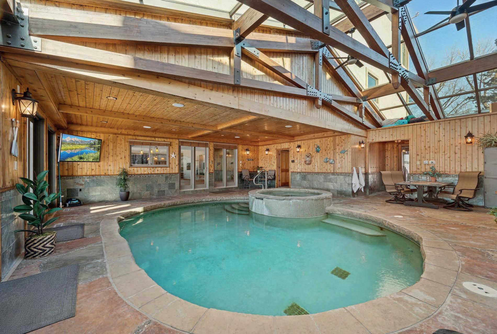 One of the home’s most distinctive features is its indoor pool and spa space—an element that brings the experience of the lake indoors and extends it through every season. It adds a layer of flexibility that makes the home feel less like a seasonal escape and more like a place to settle in year-round.