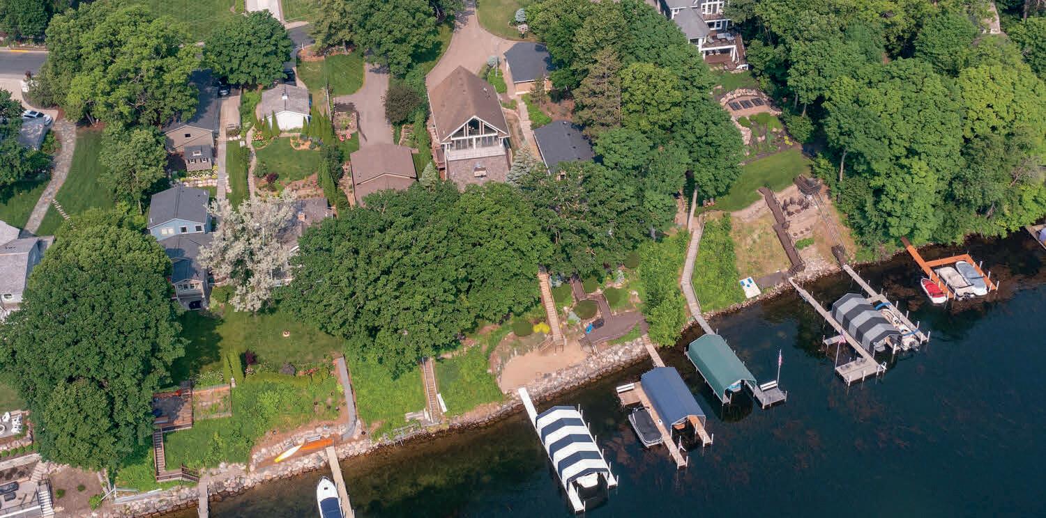 Genuinely a once in a lifetime opportunity. enjoy lake-living-lifestyle in a spacious, mechanically updated, bright, open rambler on nearly an acre of woods, lawns, and perennial gardens. Walls of glass and panoramic views of lovely natural settings from every room all 4 seasons. 2026 HOA dock and boat slip on Lake Minnetonka. An Estate setting in desirable rural-like Orono, MN. FOXHILL Neighborhood, with award-winning Orono schools, among homes of significantly higher value. Located within 3 miles in either direction to historic Wayzata or Navarre. Lots of convenient infrastructure and power shopping at Ridgedale Mall, 25 minutes to Mall of America or Lindberg international airport. A cohesive, friendly neighborhood self-managed HOA with 340’ of Smith’s Bay shoreline and modern seasonal dock installation, with a variety of slip types and sizes, coordinated around owner seniority system for annual dock slips and boathouse, available for 2026. Large common area parklike pond and gorgeous natural setting from your nearly 2000 sq ft deck, intimately private, raised gardens, in-ground 9 zone irrigation, new 200 Amp electric and 24KW automatic whole-house natural gas generator, new Premium GAF $64,000 roof with 8 new skylights, and steel gutters, 4-season sunroom for those tropical plants, and huge bonus room above garage currently used as a home office recording studio. 2 high efficiency furnaces/2 separate Air conditioners, 2 updated water heaters, all Jenn Air appliances stay. Originally re-designed to add and expand massive 12/12 pitch roof attic space into upper ensuite expansion or Great room. A wonderfully comfortable, highly private setting and Lake Living Lifestyle residence, ideal opportunity to explore new construction with your builder or Renowned, Lecy Bros, artistic, high fit and finish, custom construction and brilliant reimagined value-added designs. Valued at 1,457,700 in 2027