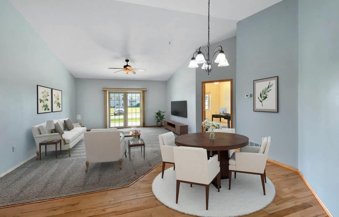 Welcome to this charming 2-bedroom, 2-bath condominium, designed for comfort and convenience. Featuring a spacious 2-stall garage and private patio, this home offers the perfect blend of functionality and relaxation. Inside you will love the bright kitchen, center island, quality cabinets and newer appliances. The open floor plan is filled with natural light. The condo features a large laundry room, primary bed and bath with ample closet space. Enjoy easy access to common area space that is perfect for entertaining or gathering with neighbors. The building features a new roof and steel siding. The HOA takes care of snow removal and lawn maintenance, making this the perfect place to call home!