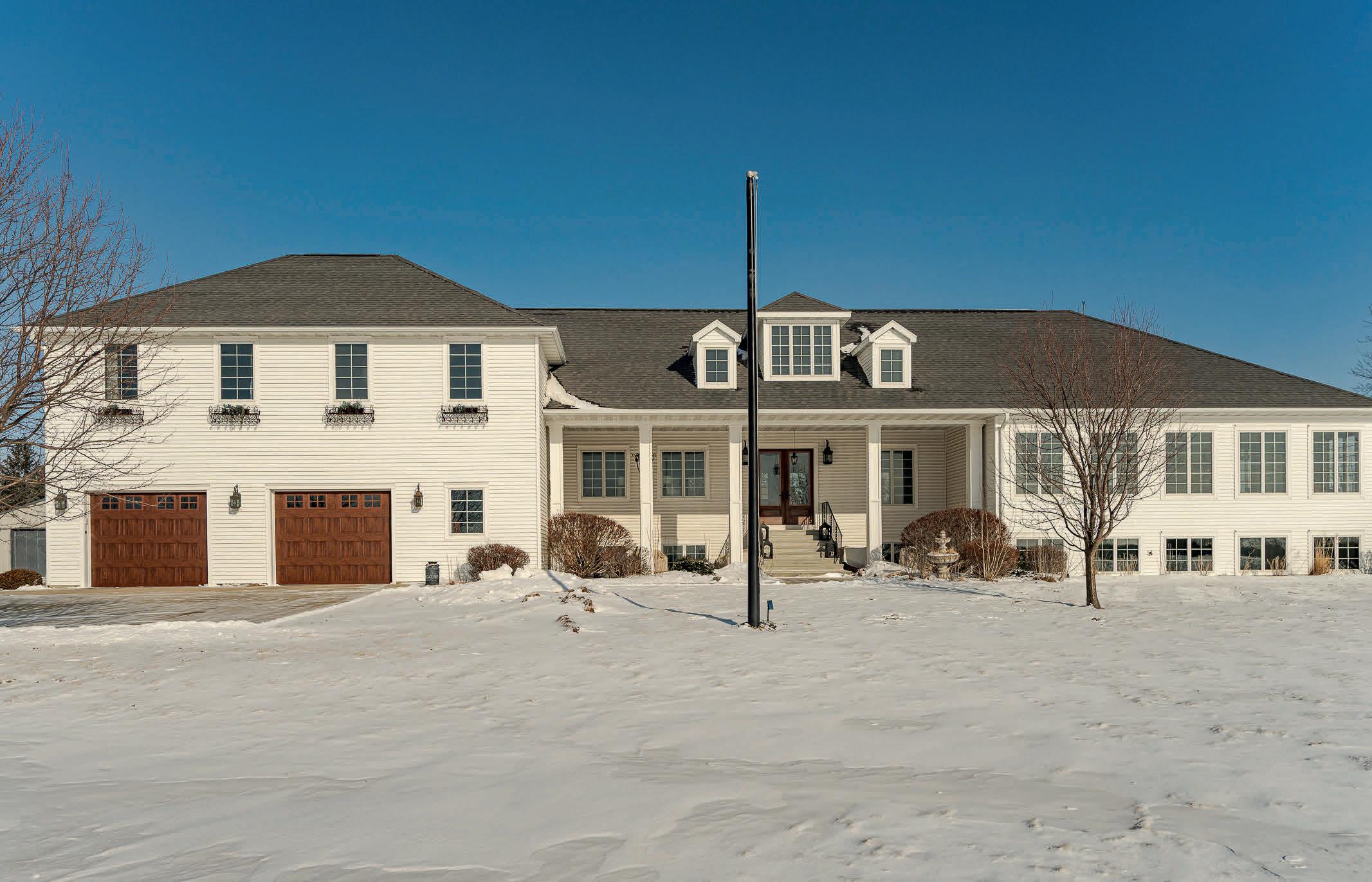 If you’ve been waiting for a property that truly feels different, this is it. The kind of place that makes you slow down, look around, and say, “We have to see this in person.” Welcome to a rare estate setting where space, privacy, and comfort come together on a beautiful 10-acre corner lot- all on paved roads and less than 2 min to downtown Stewartville and 20 minutes to downtown Rochester and the Mayo Clinic! This 6,200+ square foot estate home offers 1.5 stories of well-designed living with five bedrooms + home office which could be a 6th bedroom, five bathrooms, and room for every stage of life. From the moment you arrive, the setting sets the tone—wide open country views, mature landscaping, multiple patios and porches, and a pergola porch made for long evenings outdoors. Inside, the home blends warmth and function. A formal dining room anchors gatherings, while two separate living rooms and a full sunroom offer flexibility for quiet moments or entertaining. The kitchen stands out with two islands, custom copper sink, double ovens, and space to host with ease. Two fireplaces add comfort and character, creating inviting spaces year-round. The primary suite is truly its own retreat, set apart on its own level with a private bedroom, spa-like bath, generous closet space, and dedicated laundry. The garage houses the hot tub and sauna for you to enjoy a lifestyle that feels more like a private resort than a home. Car enthusiasts, hobbyists, and business owners will appreciate the heated two-stall garage and two exceptional pole buildings. One is a fully finished 26x56 with heat, electricity, and a concrete floor. The second is a massive 55x85 with double front doors, and endless potential. Garden beds near the buildings add charm and function to the outdoor space. This is country living without compromise. Space. Privacy. Possibilities. Once you see it, you’ll understand why this one is unforgettable.