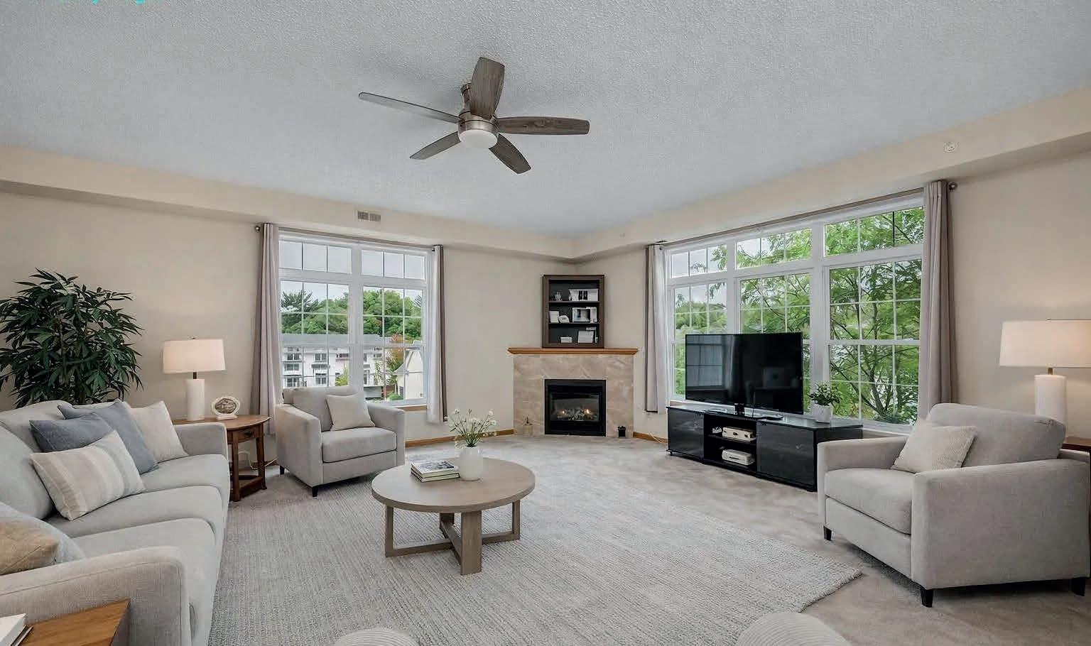Finally, The Refreshing Layout You Have Been Looking For! Impressive spaces, tall ceilings, nice updates! Kitchen with new countertops offers great work spaces, 42 inch upper cabinets, stainless steel appliances, extra storage. Plus a large one level center island perfect for everything from charcuterie spreads to holiday baking. Connect with friends and family in the dining room. Then unwind by the fire in the living room. Need room for game night, larger furniture, crafting, displaying collections? These generous, versatile living areas offer room to accommodate your needs. In addition, off the main living area is the family room with access to the Inviting deck! Impressive owners suite features a sitting area, walk-in closet, dressing room area, a private bath with double-sink vanity, separate tub and shower, and additional closets (see floor plan!). Two additional rooms include a second bedroom with walk in closet and office/flex space off the large foyer that features a deep double closet. In-unit laundry and utilities. Two heated underground parking spaces. Building offers library on the 3rd floor and a party room on the 2nd floor. Convenient location near Lake Minnetonka, shops, restaurants, coffee, live music, theater, with easy access to the Dakota Trail for walking/biking.