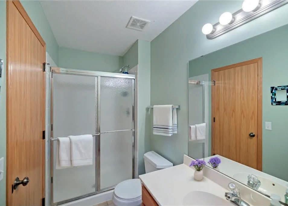 The main level features a bedroom with an ensuite bath, while upstairs you’ll find a generous primary suite with its own ensuite and a vaulted ceiling, plus two additional bedrooms that share a full bath. The lower level adds even more living space with an additional bedroom and bathroom, a versatile flex room, an impressively large family room, and abundant storage—perfect for keeping seasonal décor neatly organized.