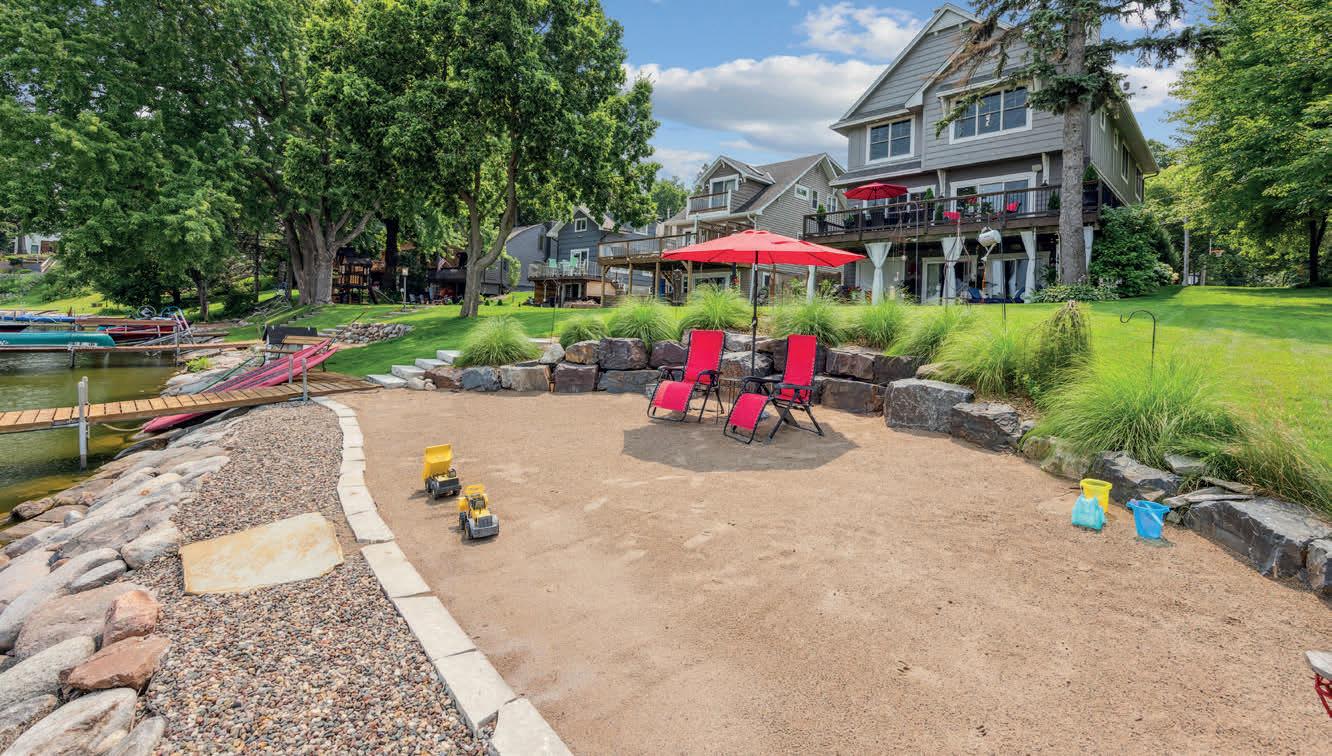 Experience the very best of Lake Minnetonka living in this architecturally refined custom home on the coveted shores of Harrisons Bay. Thoughtfully designed for both everyday comfort and exceptional lakeside entertaining, this stunning residence offers 5 bedrooms, 4 bathrooms, a 2-car garage, and 4,575 finished sq ft of beautifully curated living space. Step outside to over 40 feet of private sandy beach, where a smooth riprap stone path leads you into pristine sandy-bottom waters of the bay. With a highly soughtafter gradual slope to the shoreline, the setting is ideal for swimming, relaxing, and enjoying lake life at its finest. Inside, expansive windows frame sweeping lake views from the primary suite, office, kitchen, living room, and the walkout in-law suite, creating a seamless connection between indoor living and the lake. The lower-level in-law suite offers exceptional flexibility with a full kitchen, additional laundry, and a charming back porch, perfect for guests, large families, or multi-generational living. Rare conveniences elevate this property even further, including the tuck-under garage and two additional off-street parking spaces, 30 ft of adjacent open buffer space thanks to the City of Mound Dock Program, all uncommon luxuries on the lake. This is Lake Minnetonka living at its most beautiful.