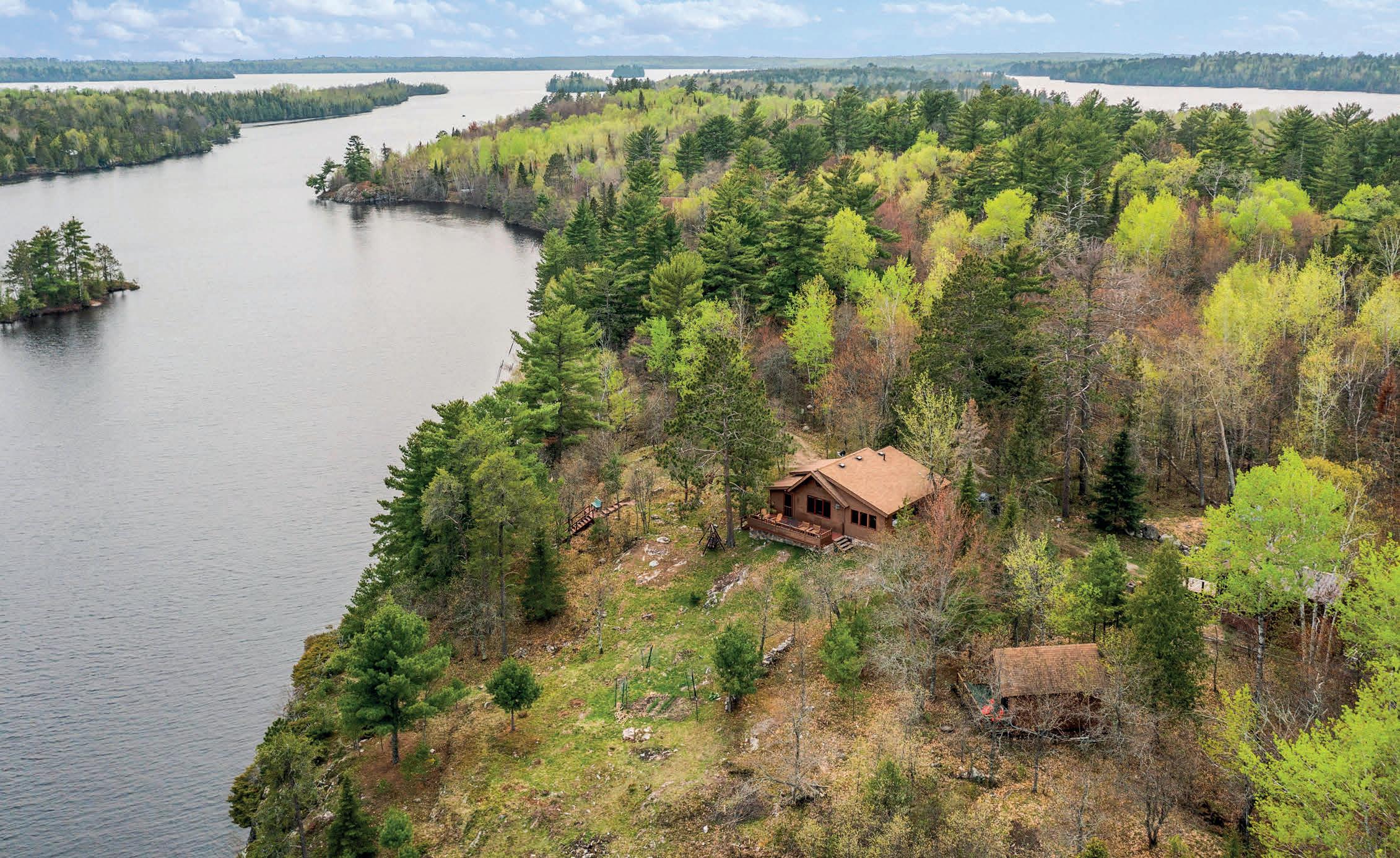 A winding, wooded lane leads to a sprawling one-story walkout sited on 15 private acres with scenic landscape and sandy shoreline. Idyllic Minnesota living in all seasons. West facing panoramic views command your attention throughout the architectural floor plan.