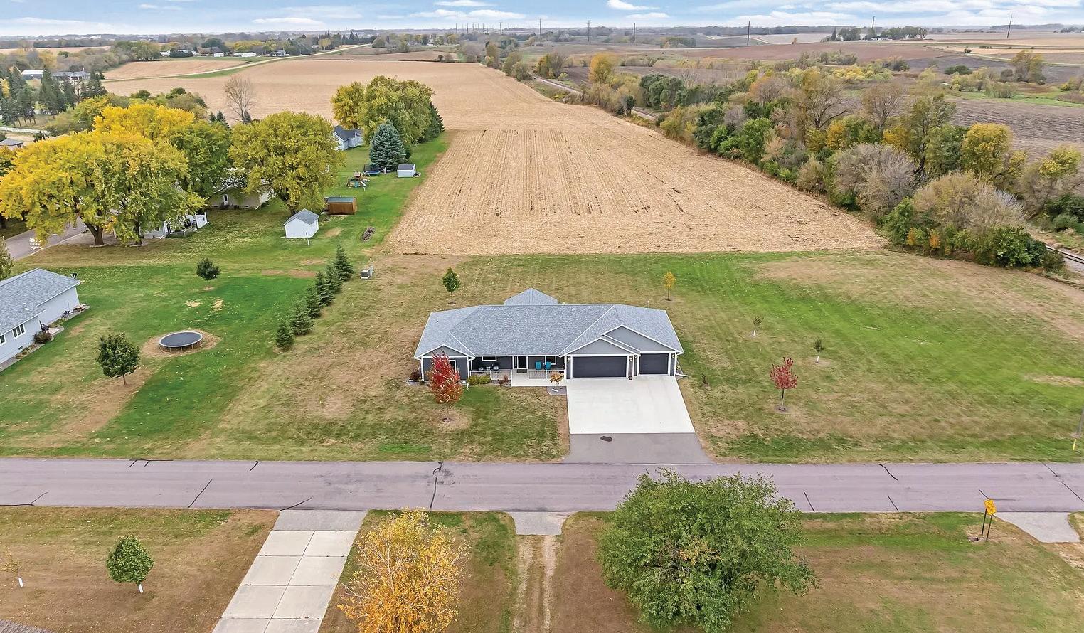 Immaculate is the perfect way to describe this beautiful new listing! This stunning three-bedroom, two-bathroom home offers the convenience of one-level living with thoughtful design throughout. The spacious layout features 36-inch doors, in-floor heat, and forced-air heat for year-round comfort. The open-concept kitchen shines with elegant onyx countertops and matching backsplash, complemented by custom blinds throughout the interior and durable LP Smart Siding on the exterior. The heated three-stall garage provides plenty of space for vehicles and hobbies alike. Enjoy peaceful mornings on the inviting front porch and unwind in the evening on the back deck while taking in the gorgeous sunsets. Situated on just over an acre of land, this home offers the perfect blend of comfort, quality, and country charm.