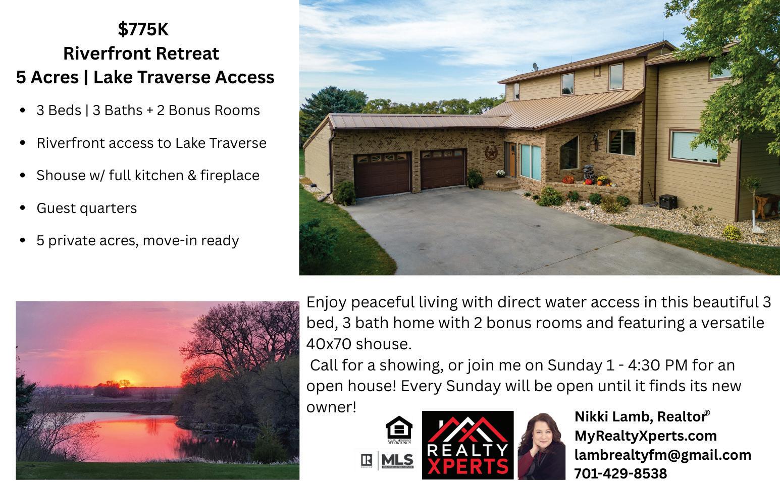 97.33-acre ranch and hunting property just 34 miles from Fargo, featuring a 4,324 sq ft, 5-bedroom home built in 2010 with open living spaces, decks, finished lower level, wet bar, in-floor heat, central AC, generator, and heated 40x36 attached garage. The land includes gardens, fruit trees, multiple heated and powered outbuildings and pole barns for livestock, storage, or car enthusiasts, a raised gazebo/watchtower with panoramic views, feed lots, water sources, and productive ag fields, making it ideal for ranching, recreation, and premier hunting.
