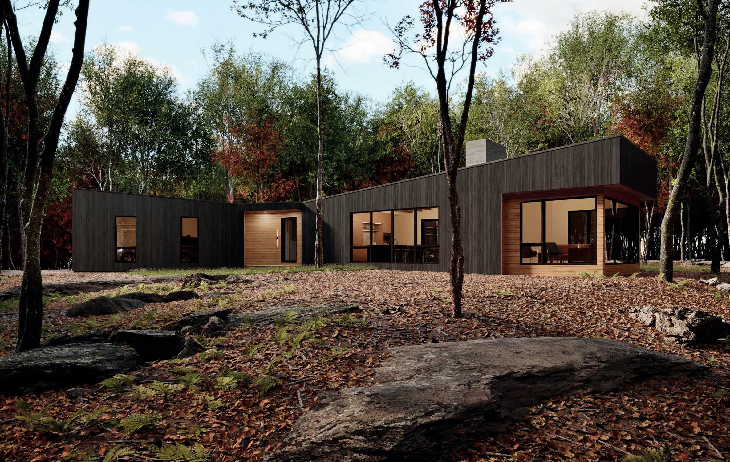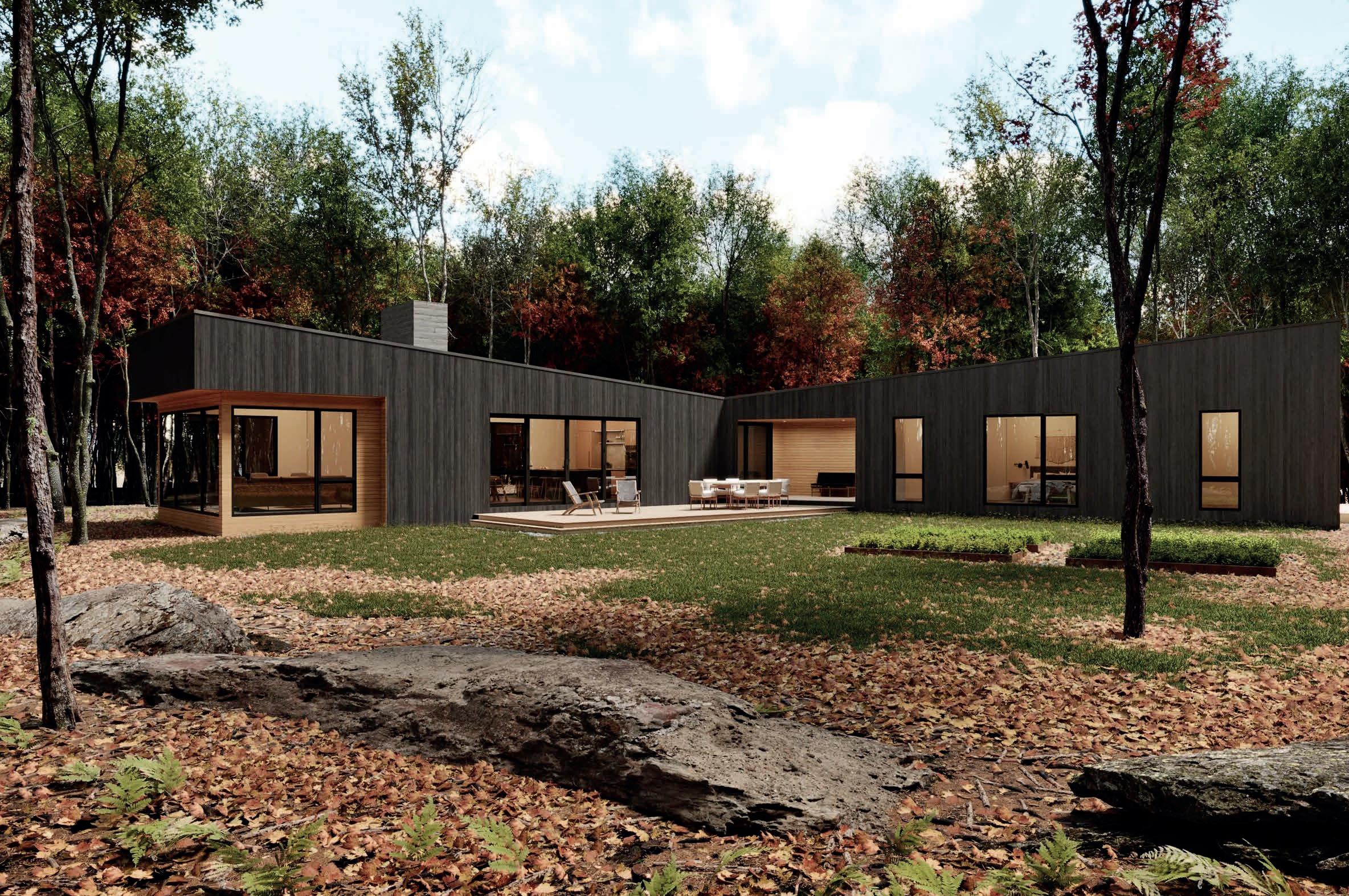 (To be built) Sleek and sophisticated, this modernist residence echoes the subtle ripples of nearby Round Pond, to which Lakeside has lake access rights. The architecture is comprised of three wings joined on a single level to create dynamic indoor and outdoor living spaces, perfect for the ease of single level living.