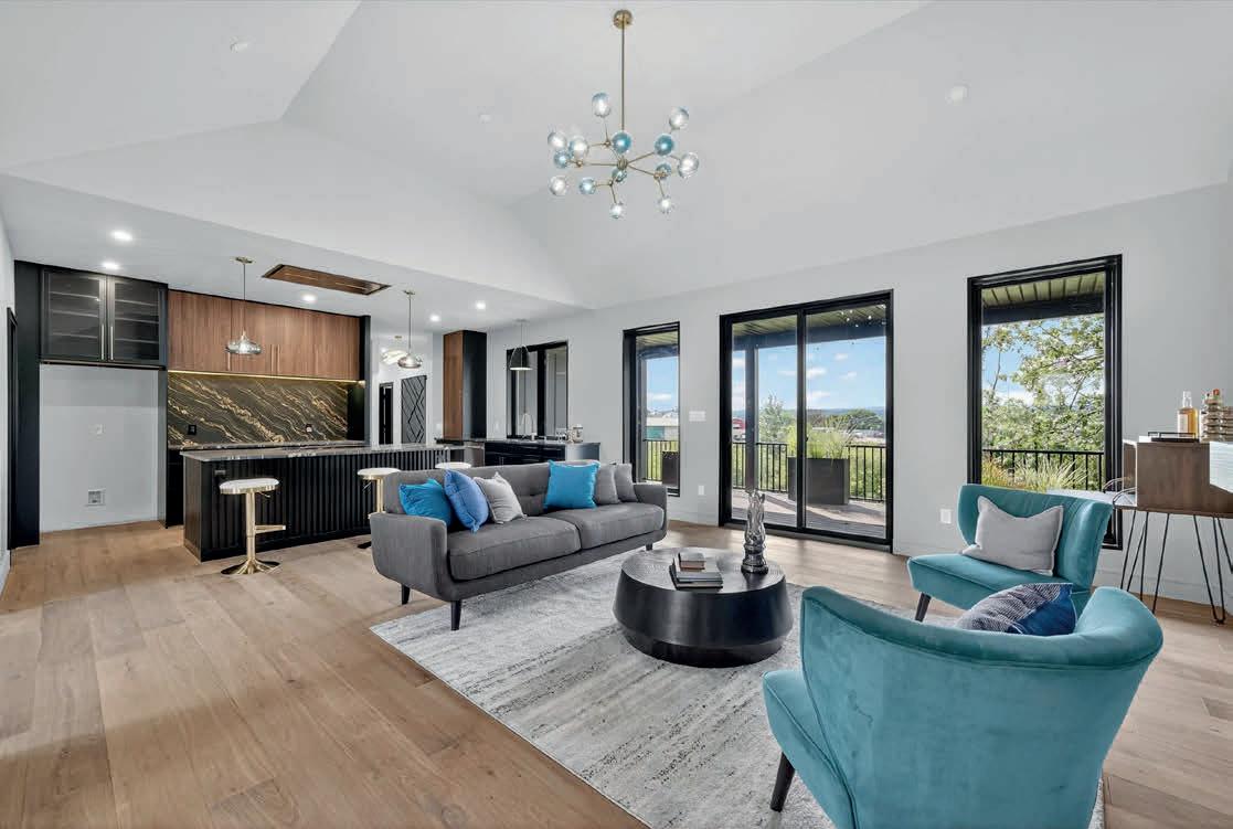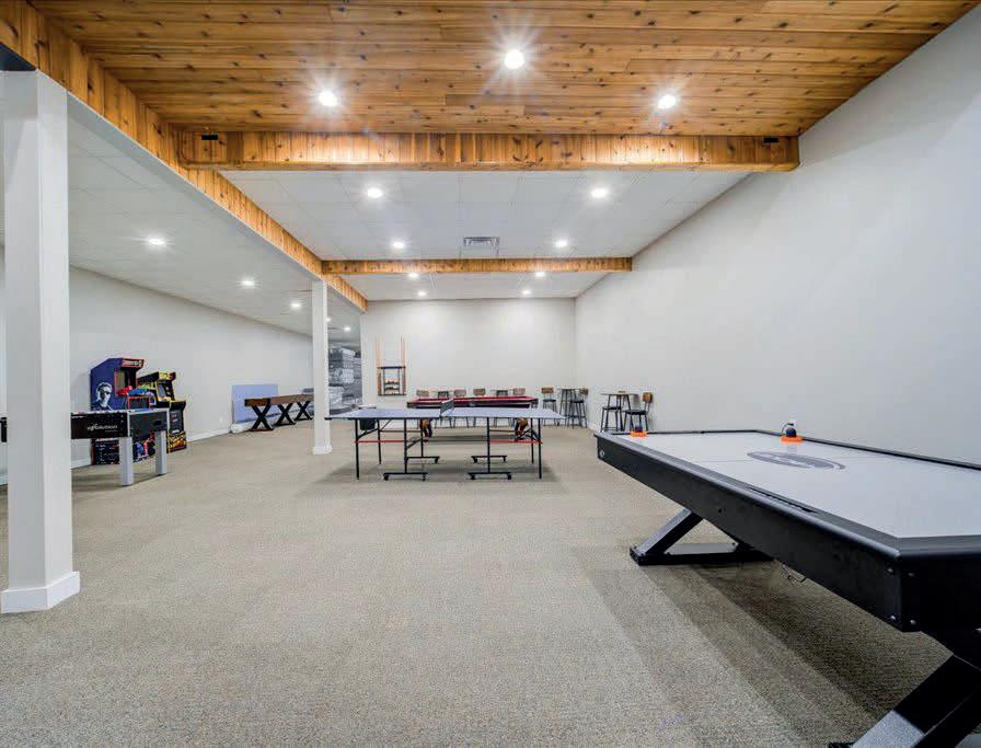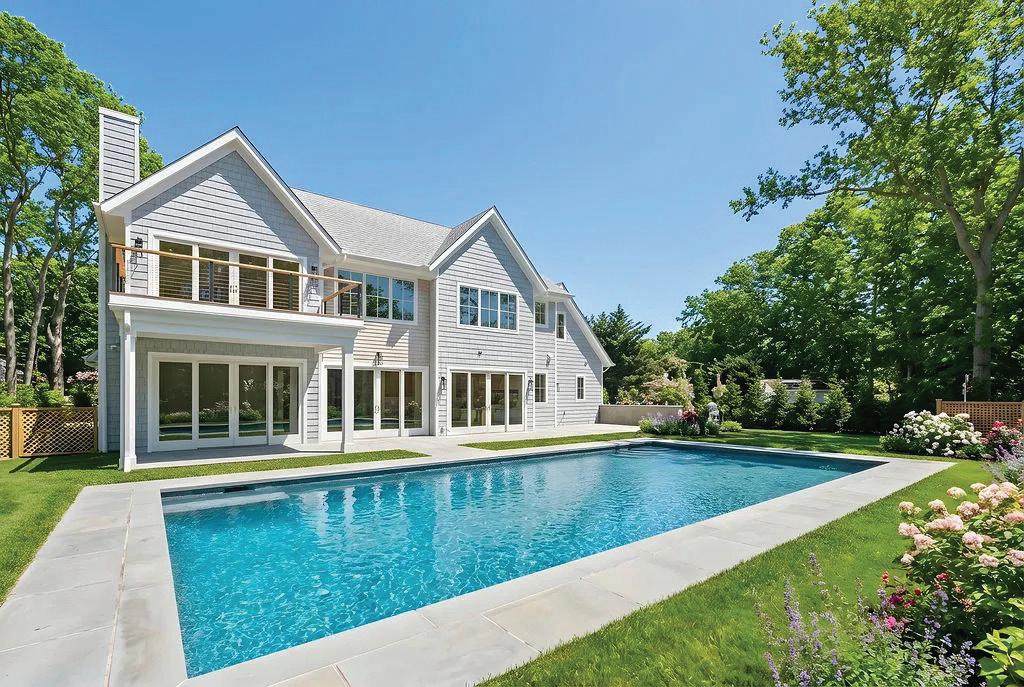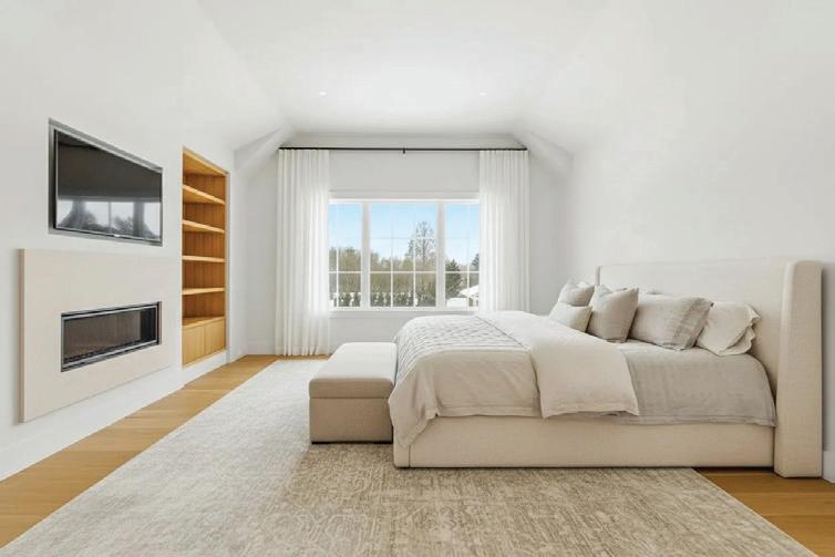 x 40’ heated gunite pool, creating seamless indoor-outdoor living. Upstairs, the primary suite offers a fireplace, dual walk-in closets, spa-like bath, and private balcony, along with three additional ensuite bedrooms, a bonus space, and second laundry. The finished lower level includes a sixth ensuite bedroom, gym, powder room, and expansive media room—completing this refined Hamptons retreat.