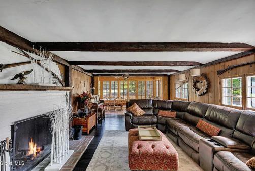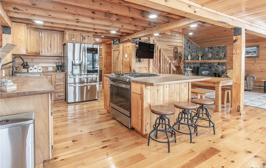 Tucked away on rolling, private land, this bright, airy log home has been fully reimagined and restored inside and out. Features include a floor-to-ceiling wood-burning fireplace, open-concept layout, and abundant natural light throughout. Fully renovated with reinforced structure and improved flow. The chef’s kitchen offers quartz counters, butcher block island with seating, subway tile backsplash, and shaker cabinetry, opening to the dining area and Great Room. 2.5 renovated baths include a primary suite with radiant heated floors, walk-in closet, and private mainfloor wing. Guest wing features two bedrooms, full bath, and main-floor laundry. Upgrades: LifeProof flooring; Mitsubishi Hyper-Heat HVAC (heat & A/C); heat pump water heater; new roof, porch, stairs & iron railings; French doors to rear deck; refinished basement & large garage; bluestone patio with firepit; new landscaping & septic. Wraparound porch, move-in ready. Minutes to Millbrook, Taconic Pkwy & Route 82.