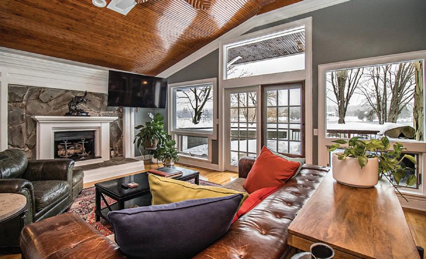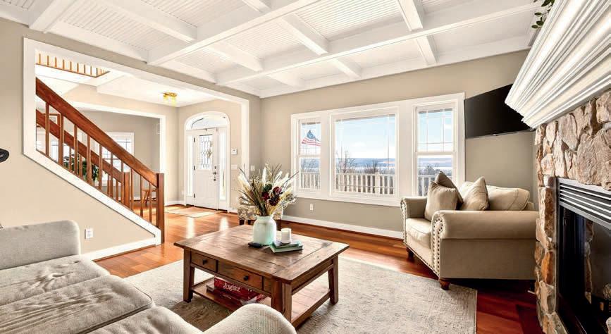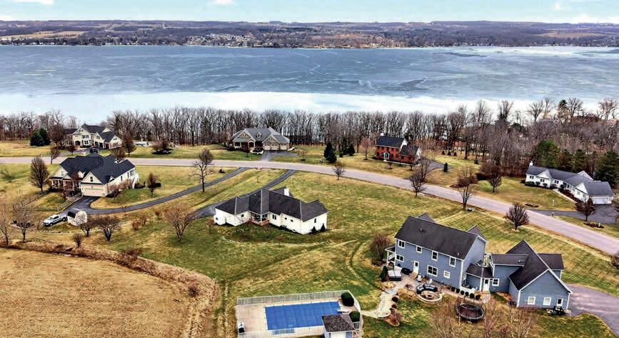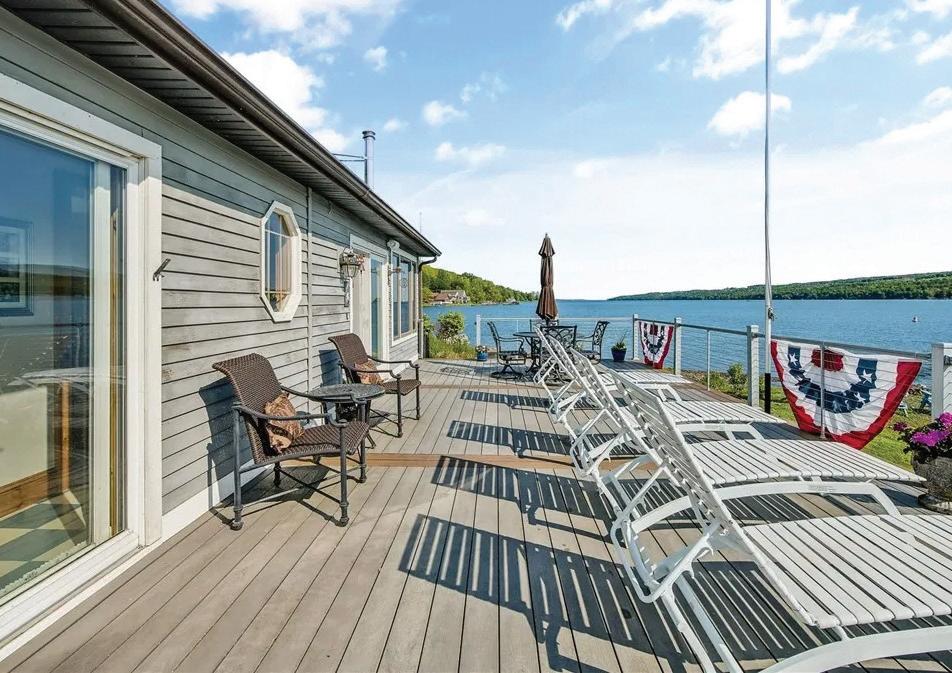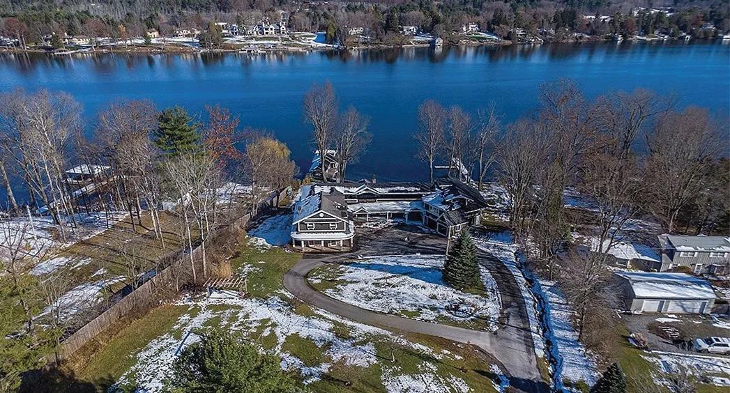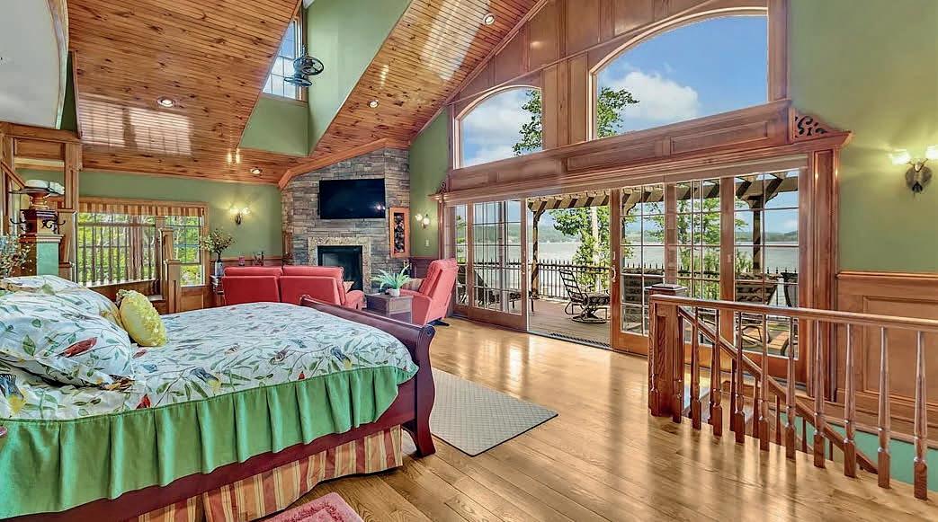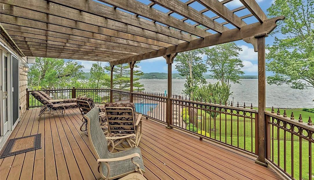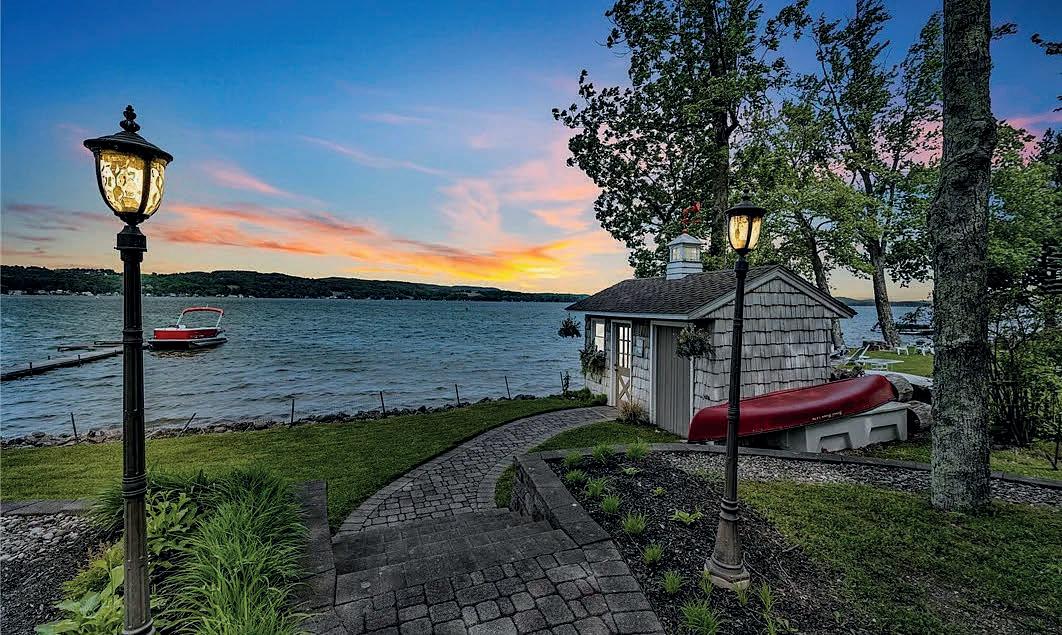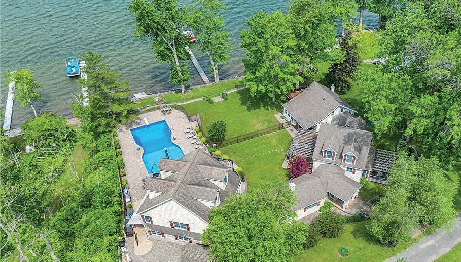 Spectacular year-round lakefront retreat with 150+/- feet of private shoreline and nearly 6,000 sq ft of luxurious living space. Perfectly positioned with an oversized inground heated pool between the home and the lakefront, this masterpiece is designed to impress at every turn. Eloquently styled and masterfully crafted, this extraordinary home features two complete living quarters— ideal for extended family, entertaining guests, or potential B&B use. The interiors boast impeccable oak and maple woodwork, Wood-Mode and Brookhaven built-ins and cabinetry, solid quartz and marble countertops, copper sinks, designer bath and light fixtures, custom drapery and blinds, marble-accented gas fireplaces, a bluestone wood-burning fireplace, and a stunning glassenclosed wine room.