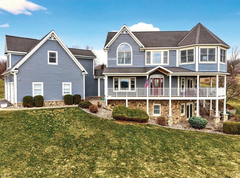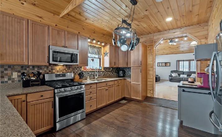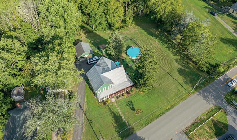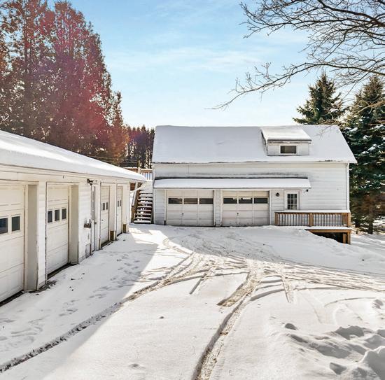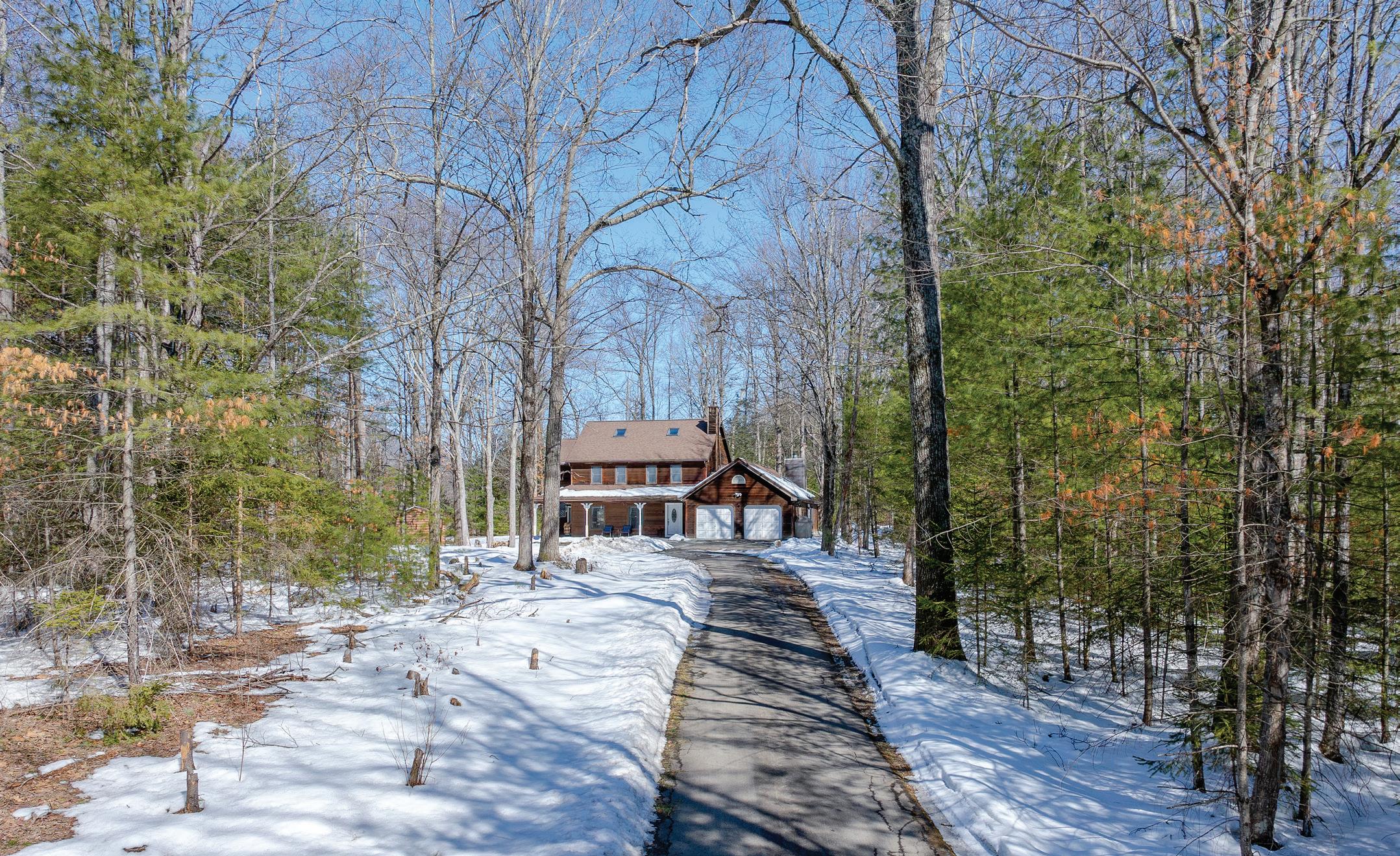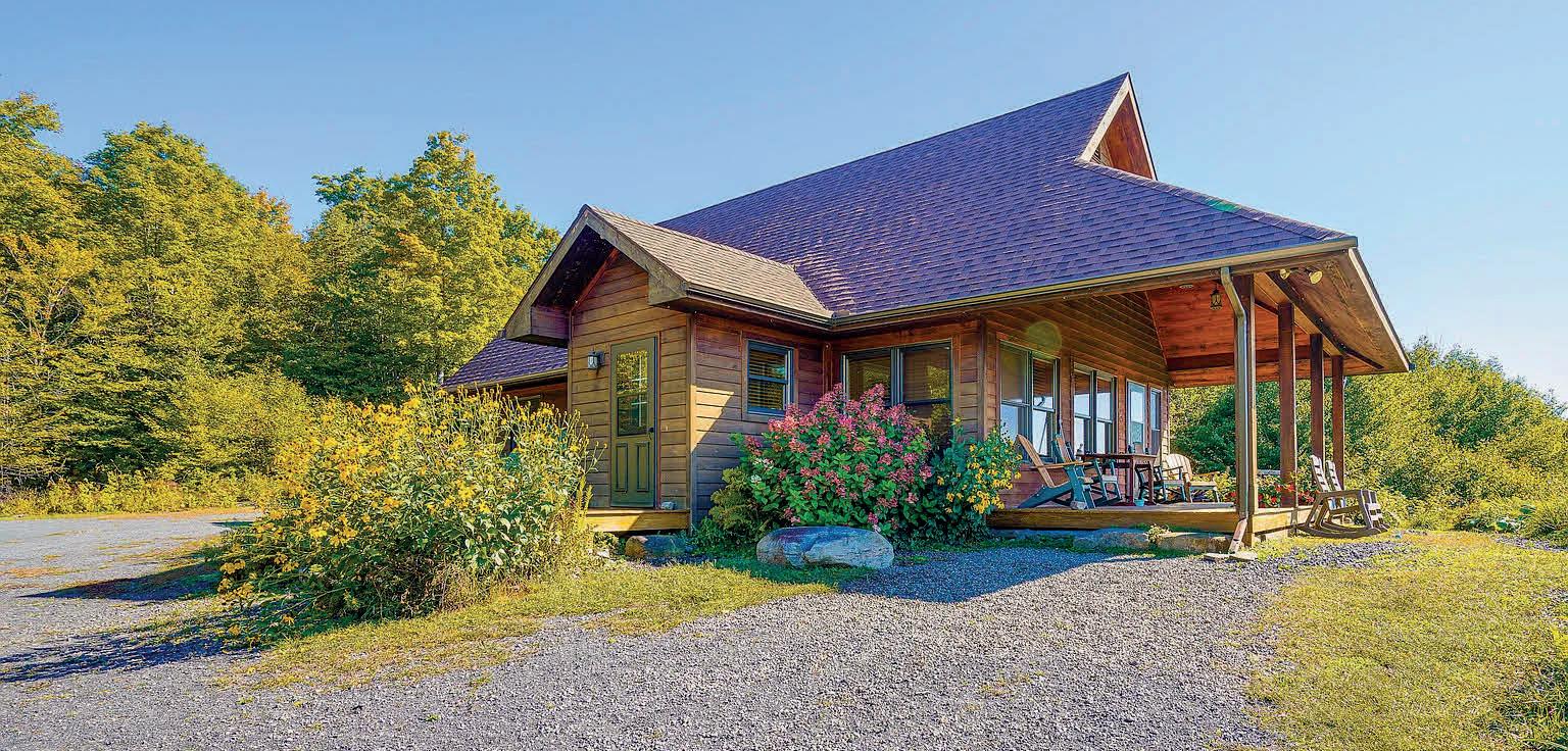 5 BD / 3.2 BA / 2,990 SQ FT / $589,900. Private 37-acre country estate with scenic views, a stocked pond, and a gentle stream running through open and wooded land near state land and Sundown Golf Course. The 2,996 sq ft main home and attached two-story cottage with a separate entrance offer 5 bedrooms, 3 full baths, and 2 half baths, ideal for multi-generational living, guests, or rental potential. The main home features an open floor plan with expansive windows, a contemporary kitchen with pantry and workstation, and a Jotul woodstove with secondary radiant heat. The second-floor primary suite includes an en-suite bath and private balcony overlooking the pond, along with additional bedrooms and laundry. Outdoor living includes a covered front porch, wraparound deck with pond access, perennial gardens, and a detached two-car garage with heat, storage, and office space. Recent updates include a new septic system and newer roofs.