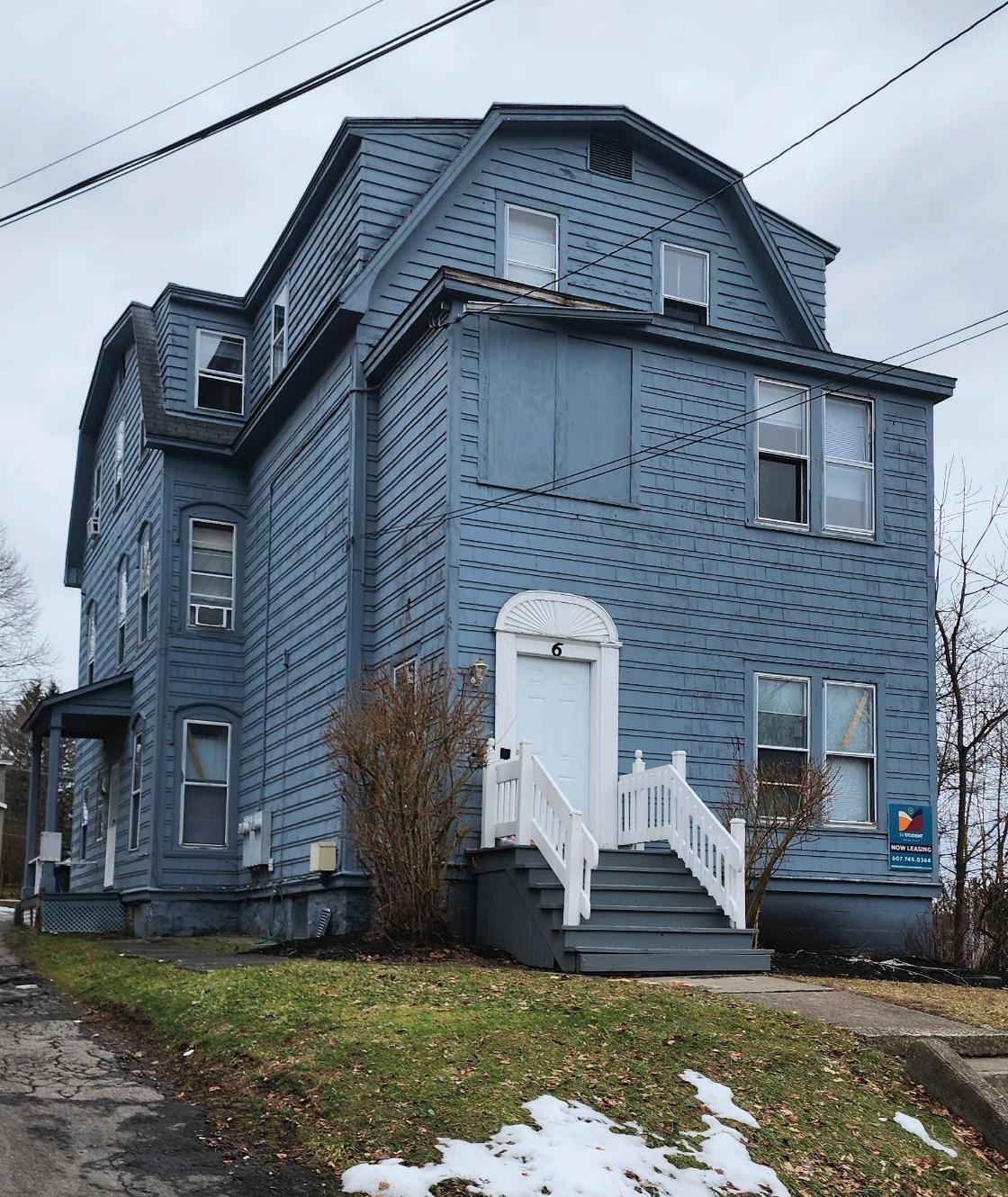 3,974 square foot, 3-unit, 15 bedrooms total house (5 bedrooms per unit) currently used for student housing. Within walking distance of both SUNY Cortland and the Cortland City central business district. Rent is $3,600.00 per bedroom, per semester. Owner pays for electric and gas utilities. Large parking lot. The owner is a licensed real estate agent. Note: The garage shown at the rear of the property in aerial photographs has been removed. Also, the Town / County tax shown below includes the City tax.